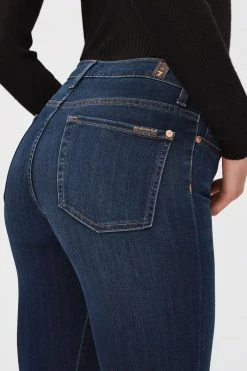 Create a seductive, style-savvy silhouette in 7 For All Mankind’s super high waist Aubrey jeans. Slim Illusion Luxe stretch denim is created using innovative denim technology with a slimming fit that moulds and moves with you. Starlight is a rich, deep indigo denim wash highlighted with contrast stitching and copper hardware for a casual, elevated look.Â