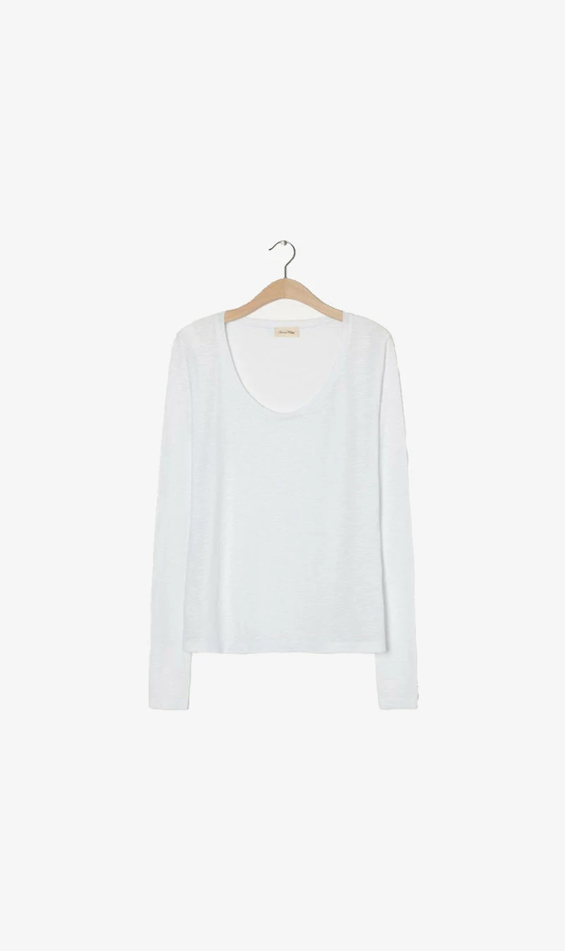 The American Vinatge Jacksonville Long Sleeve in White. A fine Long sleeve featuring a U neckline.Â
