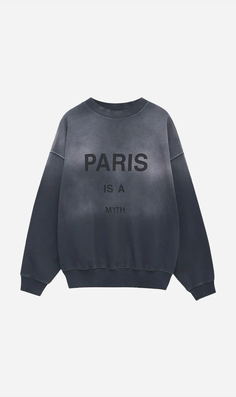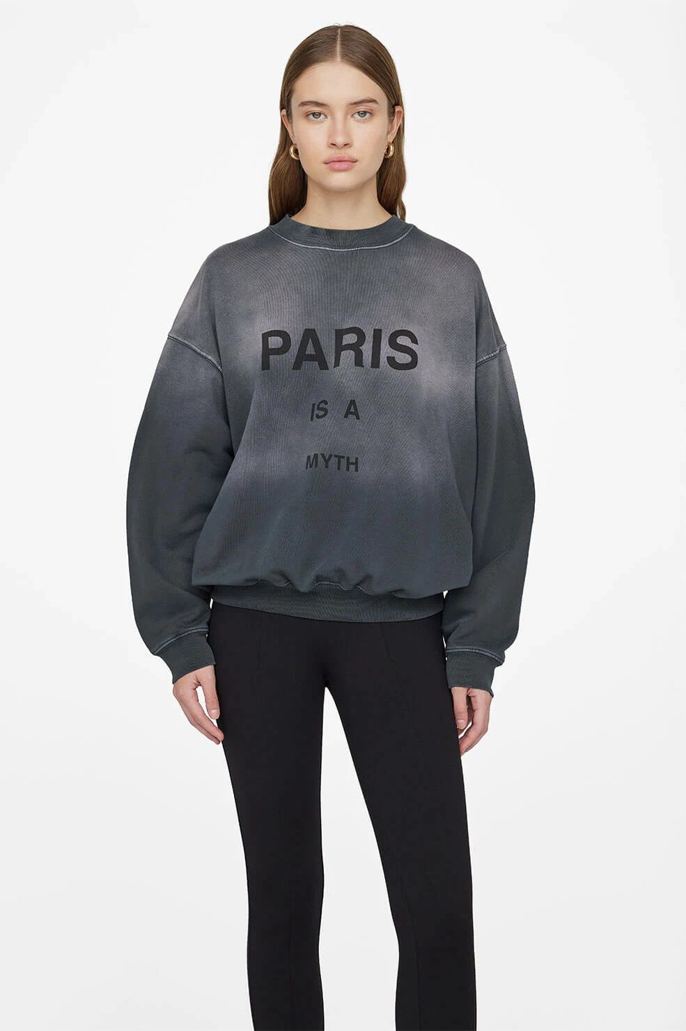 The Jaci Sweatshirt Myth Paris by Anine Bing is an oversized crewneck pullover made from the brand’s signature French terry fabrication in a sun-faded charcoal ombre wash. The perfect cozy separate, the Jaci features a screen printed 2000s-inspired tonal graphic on the front, celebrating the multilayered nature of Paris.