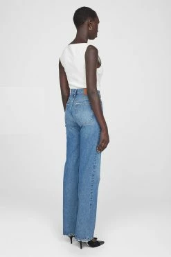 The Kat Jean by Anine Bing is a ’90s-inspired style crafted from 100% cotton rigid denim in a nostalgic aqua blue wash. It features subtle pocket imprints at the rear with natural grinding and deconstruction throughout for an authentic vintage look and feel.