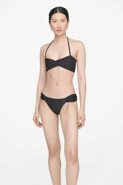 The Rosa Bikini Top by Anine Bing is a bandeau-style swim separate designed with flattering twist-front detailing at the bust and structured boning at the side seams. Constructed from a fully-lined recycled nylon-spandex blend elevated with honeycomb-inspired surface texture.Â