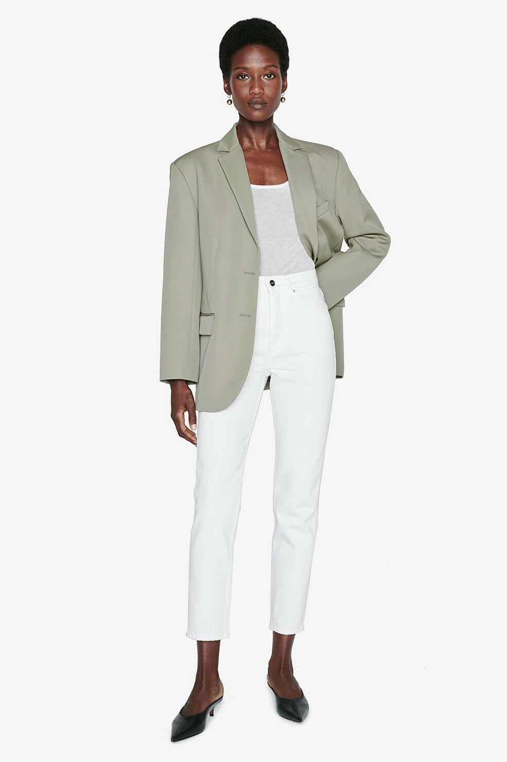 The Anine Bing Sonya Jean is an everyday wardrobe building block. It’s constructed from 100% cotton rigid denim in a versatile mid indigo wash inspired by authentic vintage denim.