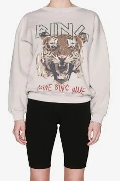 The best-selling Tiger Sweatshirt from Anine Bing, now available in a muted neutral colorway. This signature pullover features the iconic, vintage-inspired tiger graphic infused with a touch of bold color. Serving as a seasonal update to the original Tiger Sweatshirt in black, the Tiger Sweatshirt in stone comes in a structured, heavyweight 100% cotton fleece.