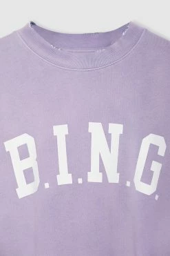 The Anine Bing Tyler Sweatshirt in Washed Lavender is the perfect on-the-go sweater. Designed as an oversized crewneck in a sun-faded washed lavender hue, the Tyler Sweatshirt features white collegiate lettering at the chest with a rounding out athletic-inspired look. Pair with anything from your errand bike shorts to your wide-leg jeans.