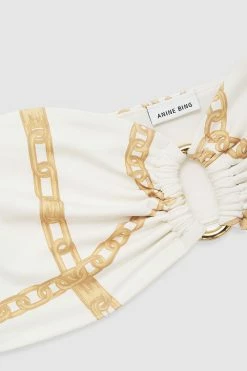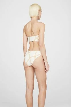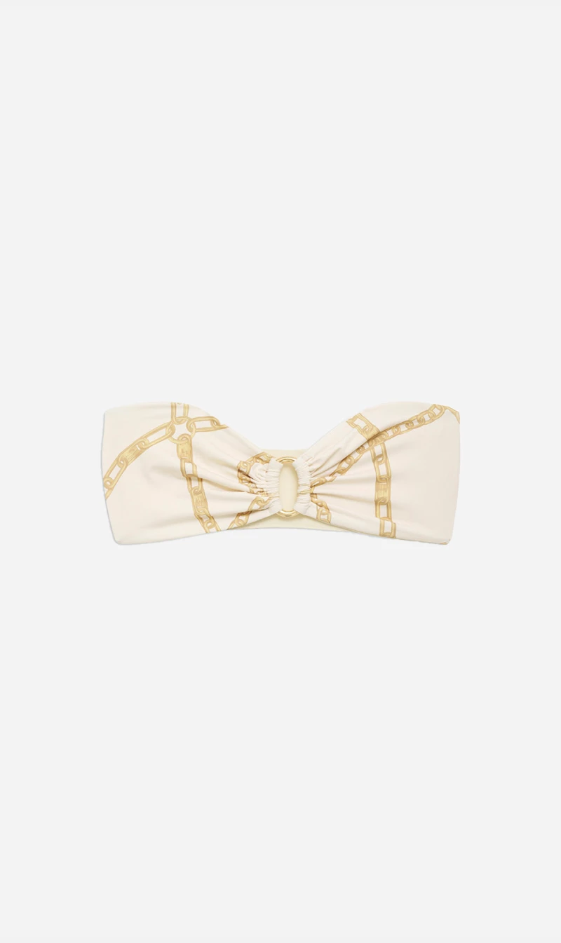 The Viv Bikini by Anine Bing is an effortless poolside staple. A bandeau-style bikini top constructed from a fully-lined recycled nylon-spandex fabrication elevated in a cream and tan link print, The Viv Bikini features a seamless, slide-on construction with boning at the sides for added support. Finished with a ring at the center front and an ANINE BING logo charm in yellow gold for a subtle touch of branding. Pair the Viv Bikini Top with the coordinating Viv Bikini Bottom to complete the look.