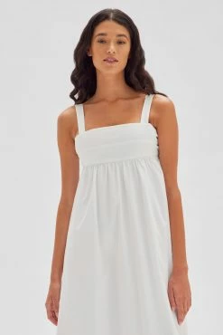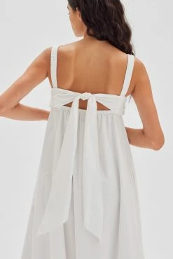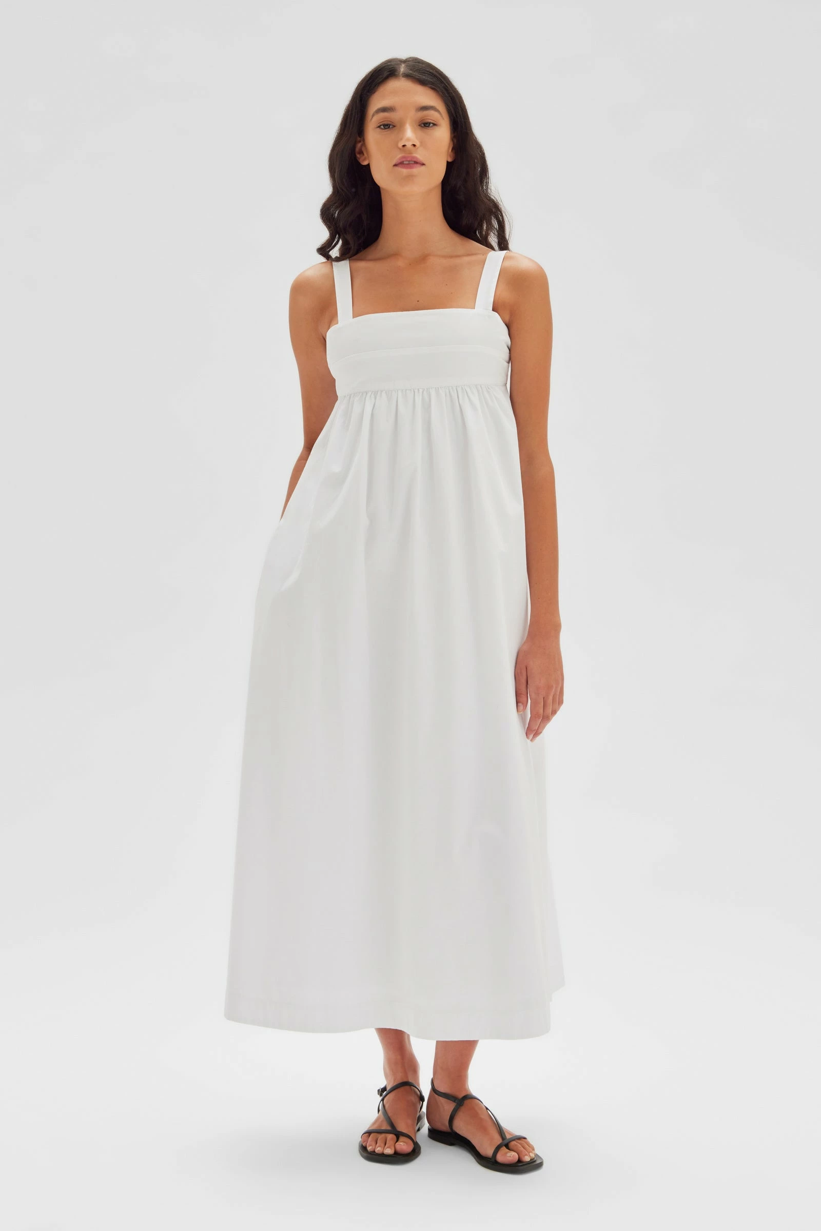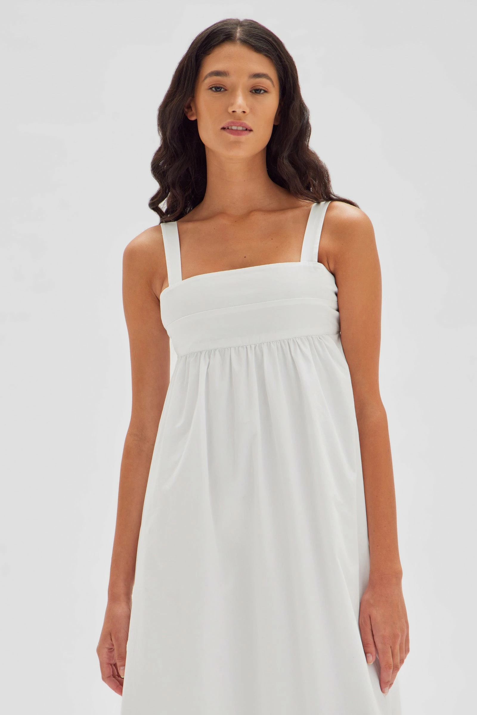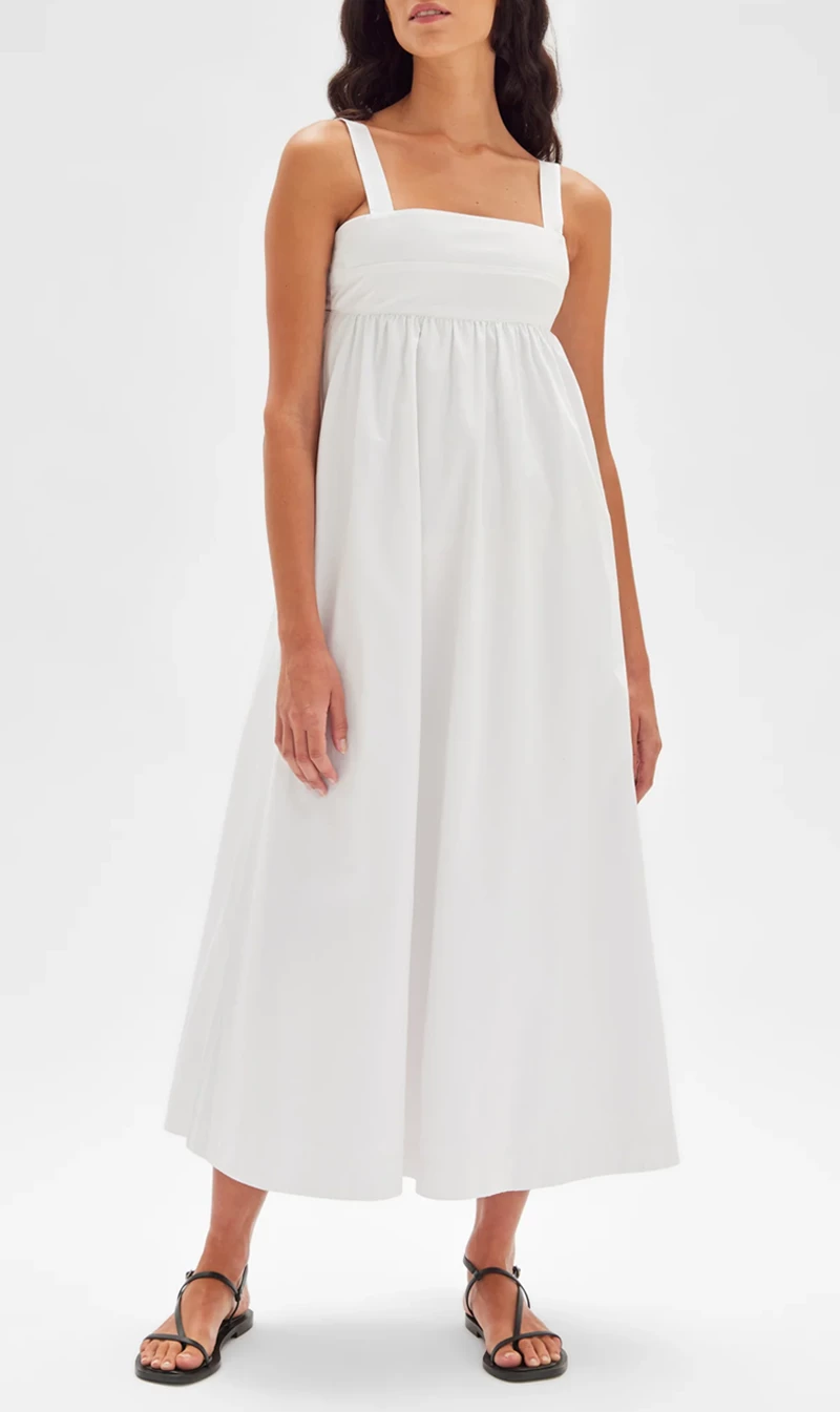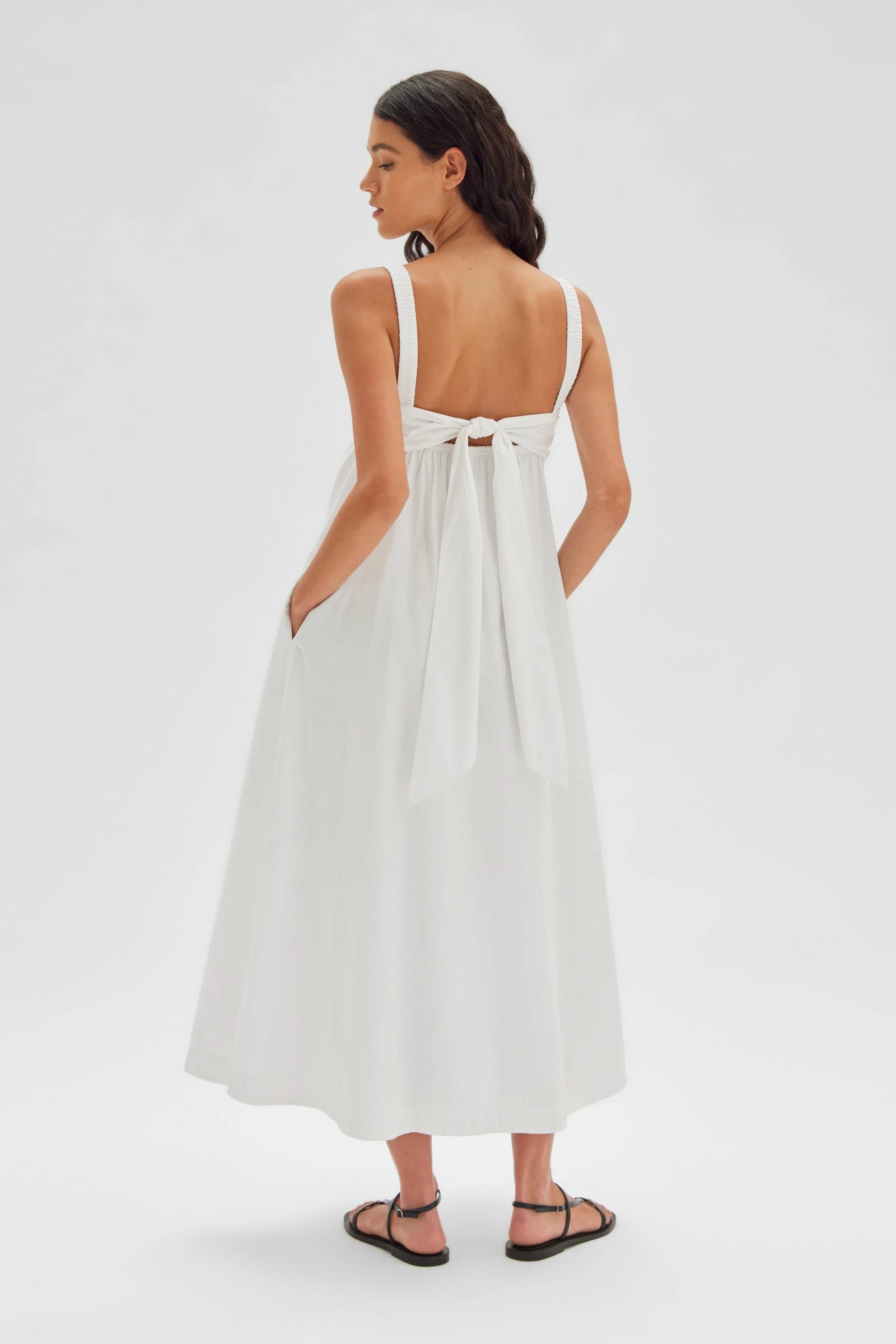 The Assembly Label Frida Poplin Dress in White is the perfect dress for easy and elevated styling. Designed with a square neckline and a tie at the back, this dress is perfect for all occasions.