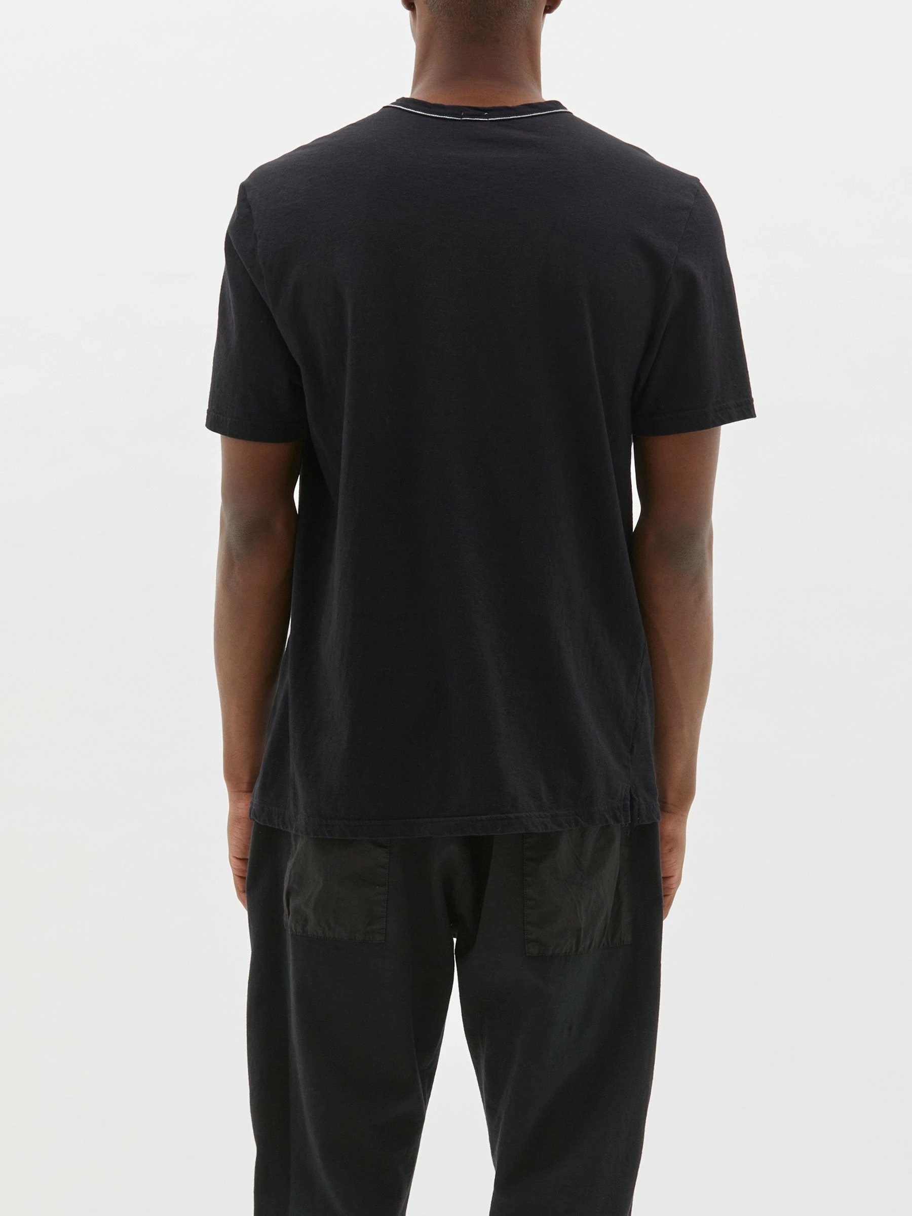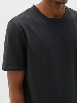 The Bassike Slim Fit T.Shirt in Black is a slim fit short sleeve t.shirt in organic cotton jersey with vintage neckline featuring signature contrast topstitch detail on back neck.