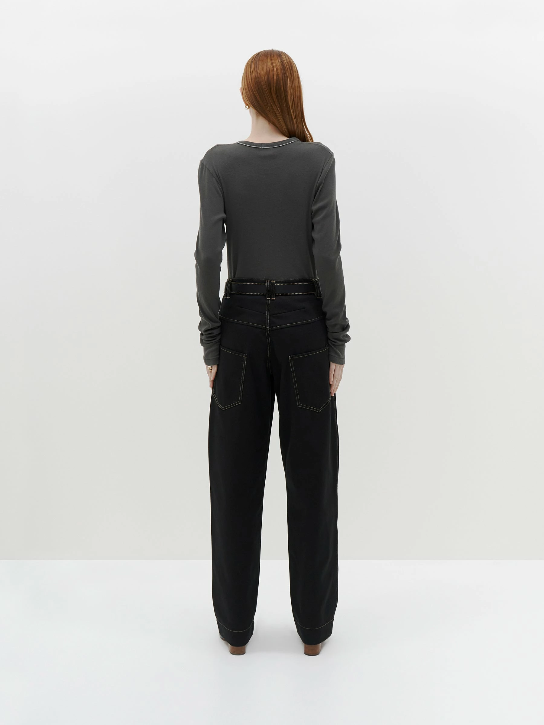 The Bassike Rib Contrast Placket Long Sleeve T-Shirt in Charcoal Marl is a slim fit long sleeve t.shirt with contrast placket, in organic cotton jersey and a cotton poplin front placket with button details.