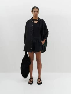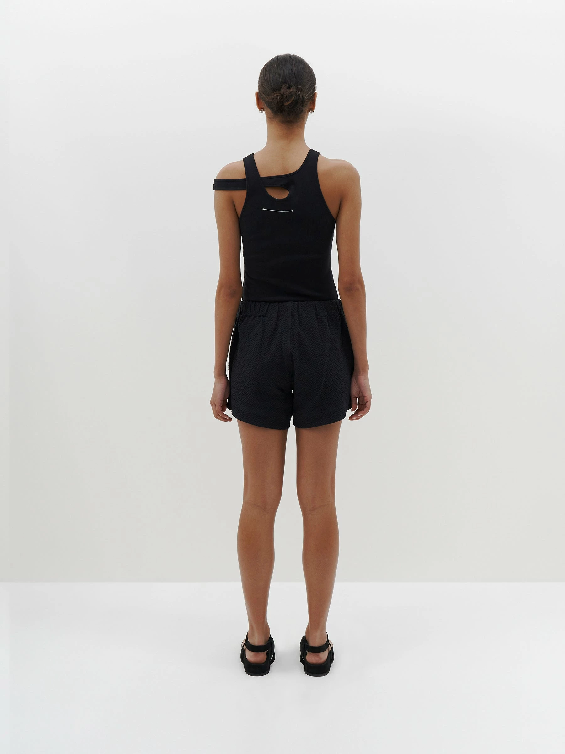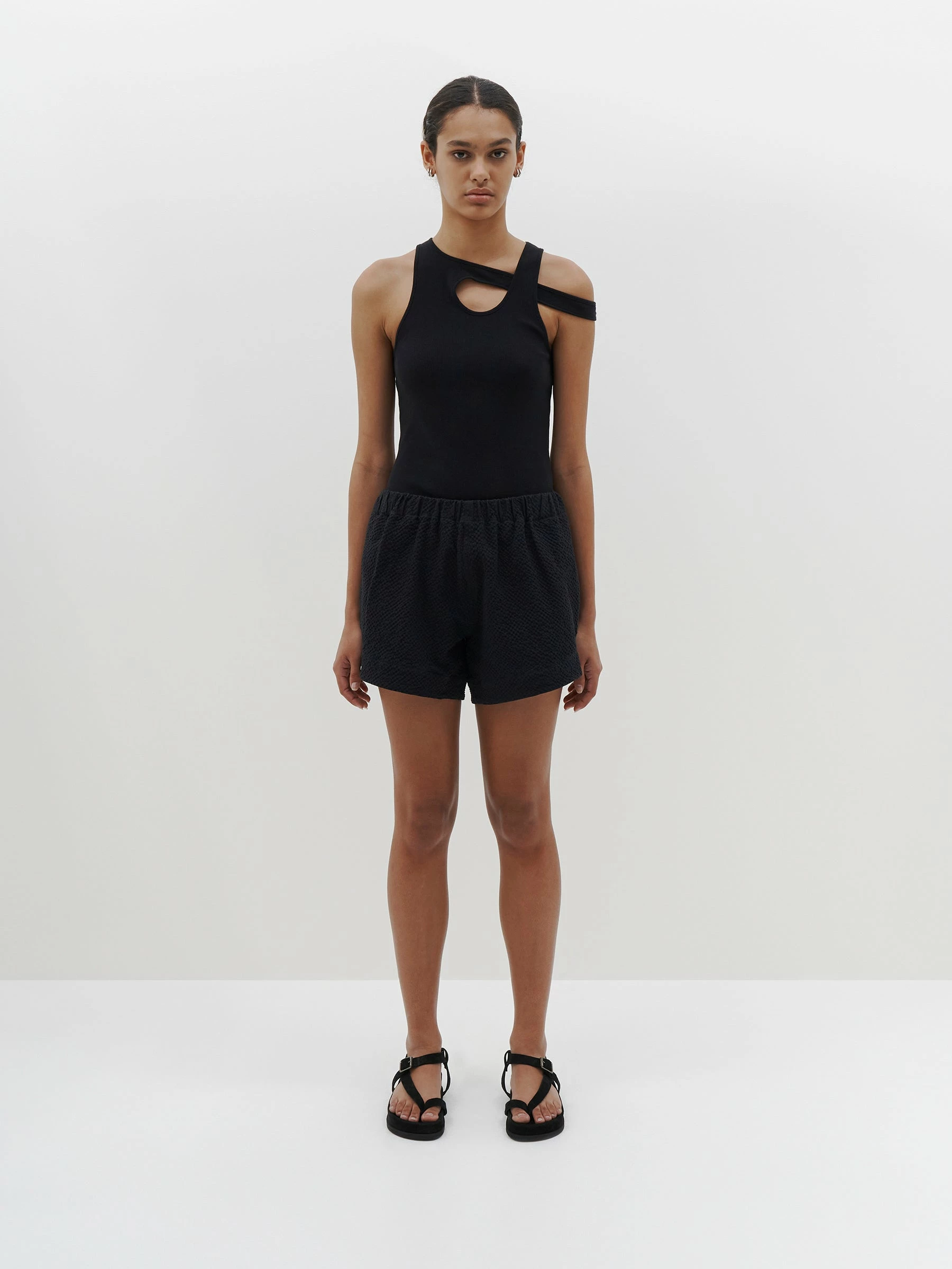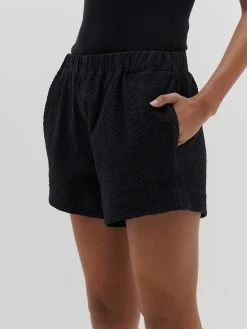 Beachside, poolside or cafe side, the Seersucker Pull On Mini Short is chic and easy. A mid rise flared style short, these are crafted in textured cotton woven fabric and feature an elasticised waistband and side entry pockets. Pair with a look shirt and summer sandals.Â