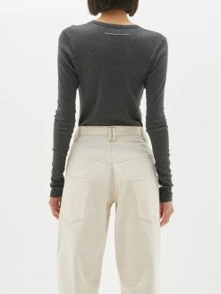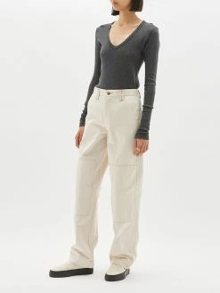 The Bassike Slim Rib V-Neck Long Sleeve T.Shirt in Charcoal Marl. A slim fit long sleeve t.shirt with v neck, in organic cotton superfine rib jersey.Â