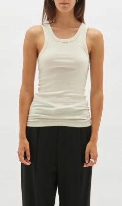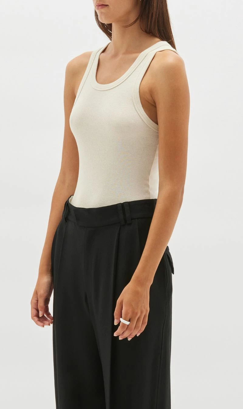 The Slim Superfine Rib Tank from Bassike is a slim fit athletic style tank with superfine rib texture. Featuring cotton wide bind and Bassike contrast topstitch on back neck.