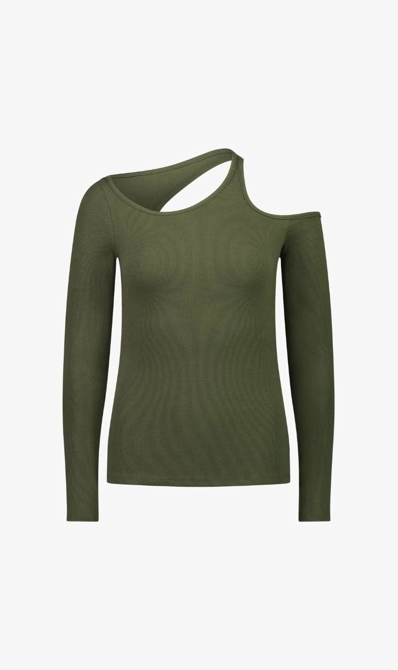 The Caitlin Crisp Smitten Top in Khaki. The good kind of cold shoulder. The Smitten top is all about business at the front and party at the back. This 2-in-one top styles perfectly with your favourite blazer. Twist it around to take it from day-to-night.