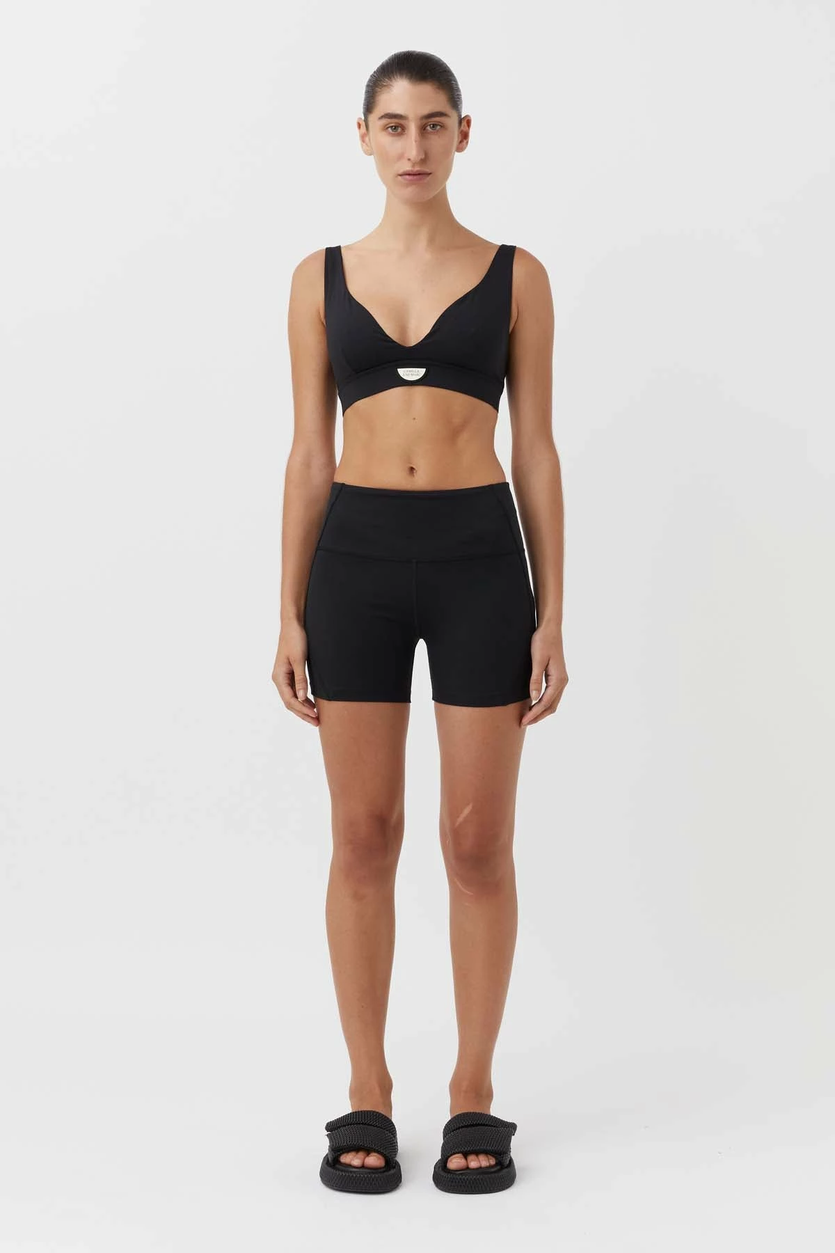 The Camilla and Marc Acacia Bralette in Black is the perfect piece to help you achieve your goals. Whether it is in the gym or athleisure while running errands, you will always be able to rely on the Acacia Bralette. Designed from a spandex blend in a form-fitting style. This minimalistic bralette is kept simple and fitted; featuring, bust darts, adjustable straps and a silicone logo patch on the front.