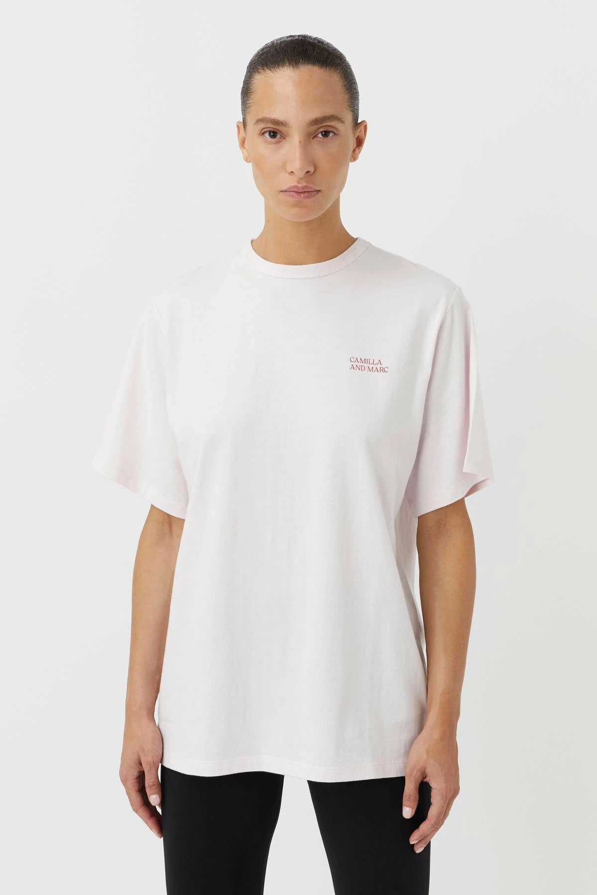 The Clayton Tee by Camilla and Marc is crafted from lightweight cotton in a subtle pink hue. This classic tee is detailed with a ribbed neckline, short sleeves, and surgical stitch hem and signed off with a tonal logo print. Style notes: Pull on over activewear or tucked into your favourite denim jeans with the Miki boot.