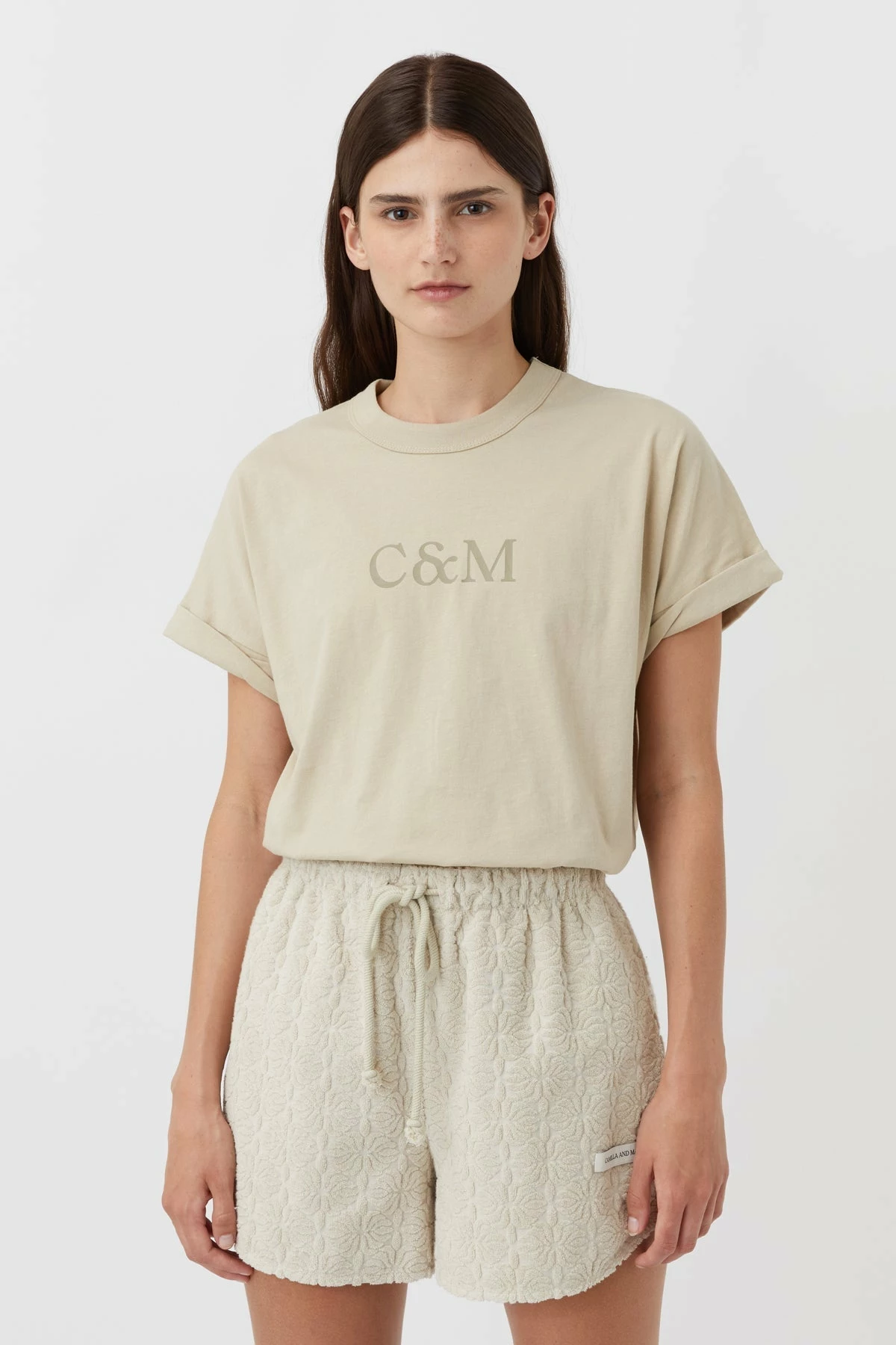 The Camilla and Marc Huntington C&M Tee in Light Stone is a loved-by-all logo tee that has been given an elevated update. Crafted from lightweight soft cotton, the “C&M” logo is printed across the front chest. Designed with a relaxed fit and finished with a round crew neckline.
