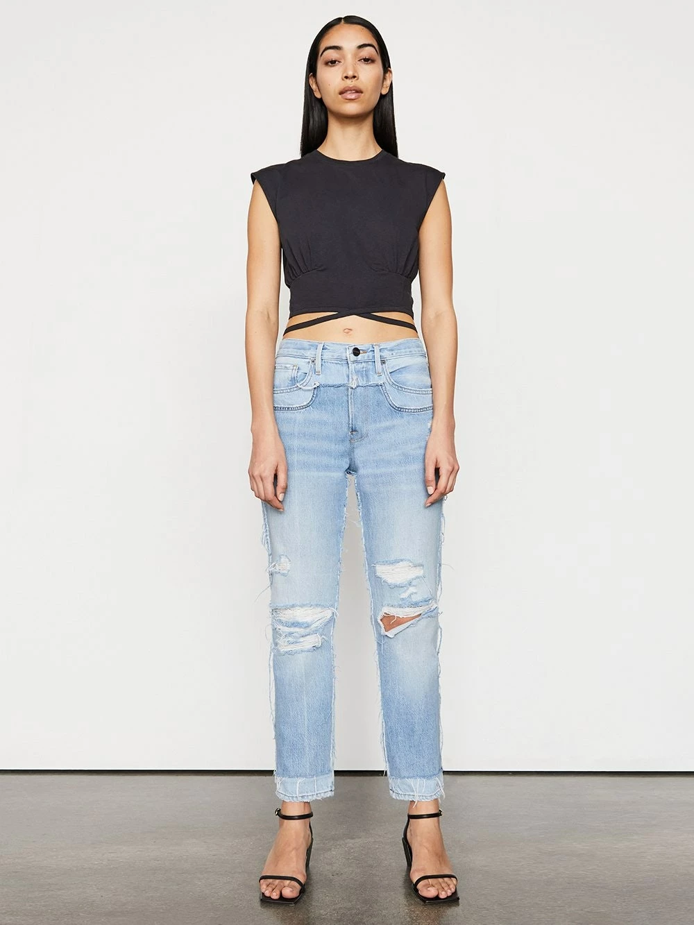 For bold style, Frame Denim combined two washes with cool destruction details to create this layered-look jean. They’re made with 15% re-used cotton and features a sustainable wash technique free of toxic chemicals, using less energy and water per jean than traditional methods. Pair yours with a crisp white button-down or voluminous blouse for instant style, day or night.