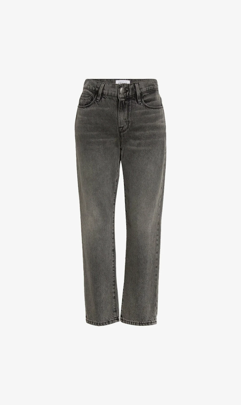 The Frame Denim Le Nouveau in Ozone. Slimmed-down, straight-leg jeans made from nonstretch denim are faded and cropped at the hem.
