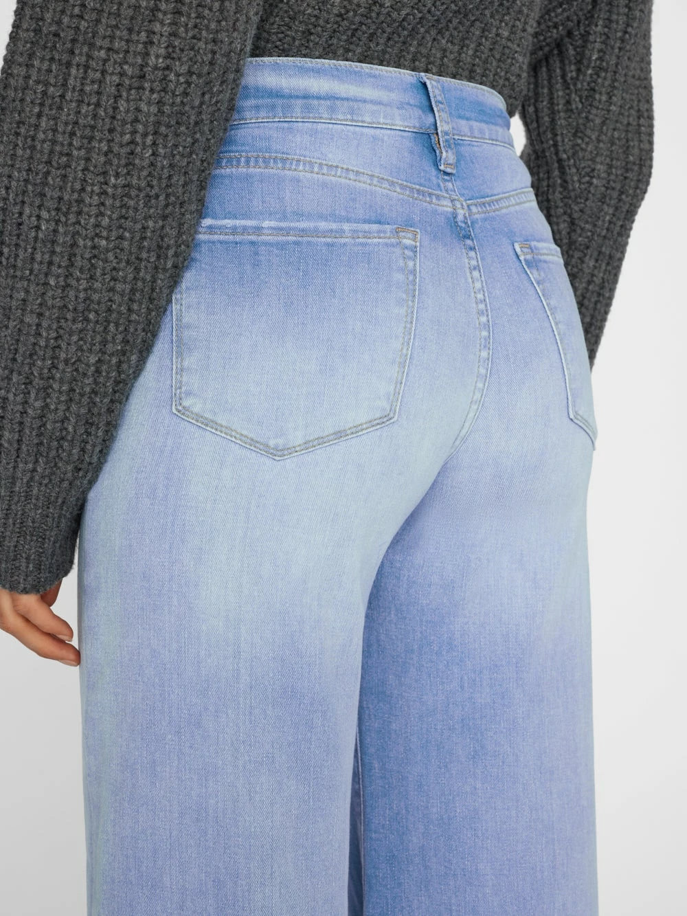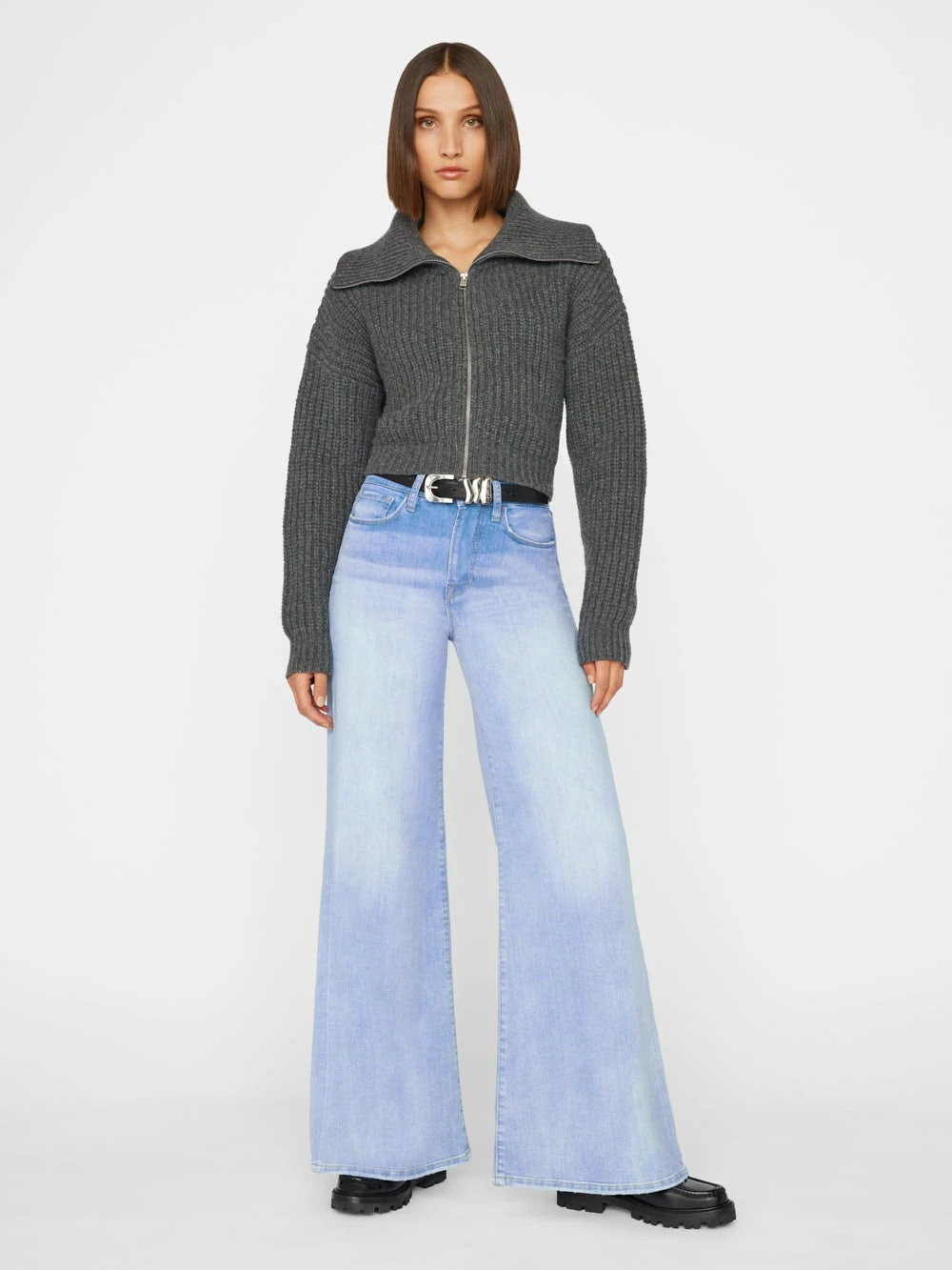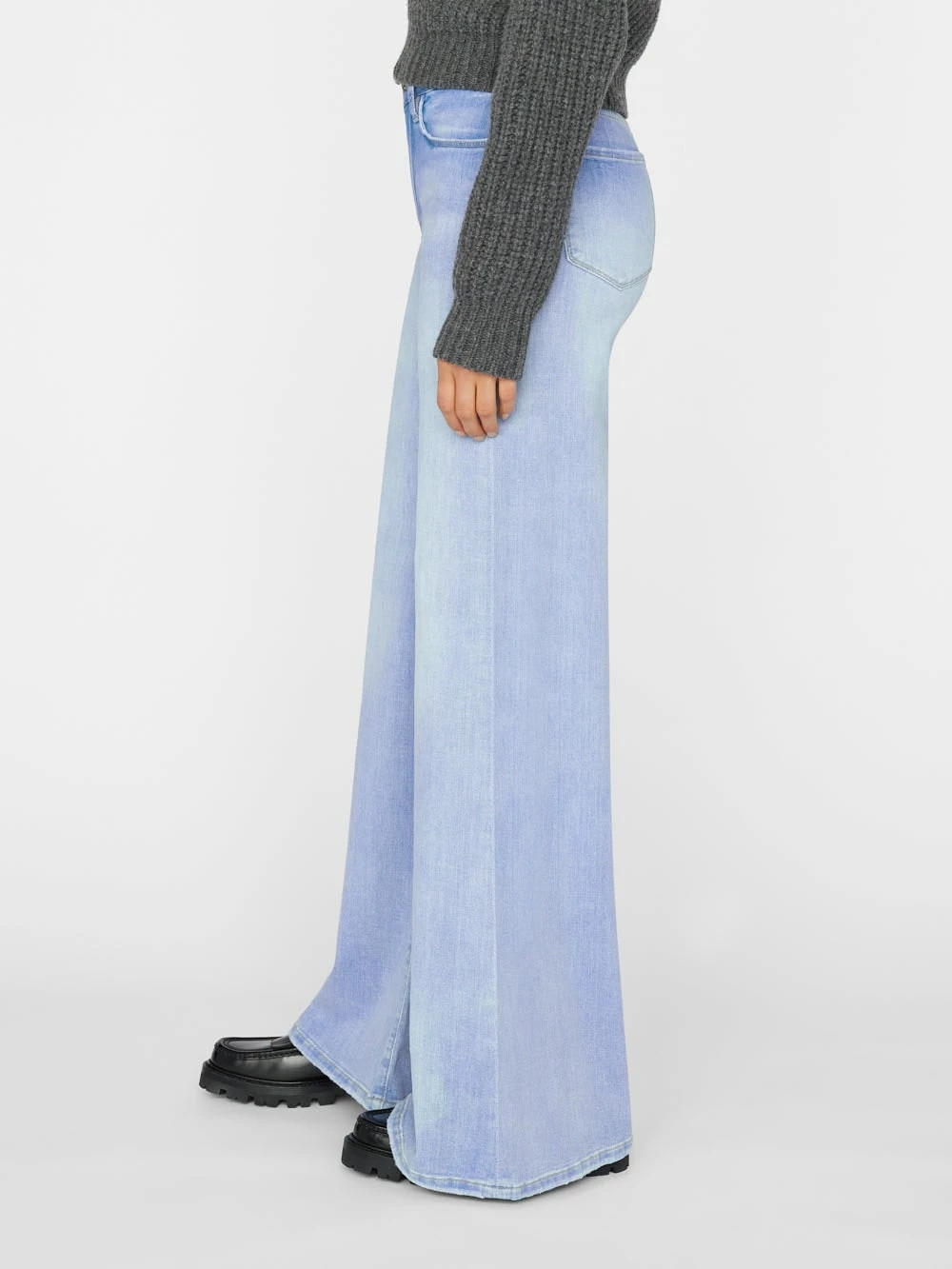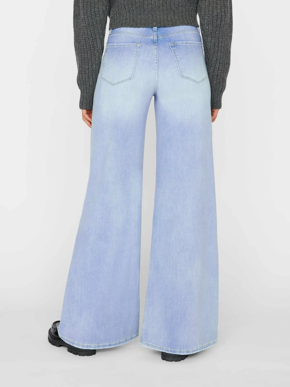 The Frame Denim Le Palazzo in Humphrey will be the new go-to jean. Featuring classic five-pocket denim styling with a high-rise, wide-leg fit that creates a sophisticated and flattering silhouette. Crafted from premium comfort stretch denim for contoured comfort, Le Palazzo in Humphrey is the light-wash blue jean that cut a striking figure, day or night. Pair yours with anything from a blouse to a jacket.Â