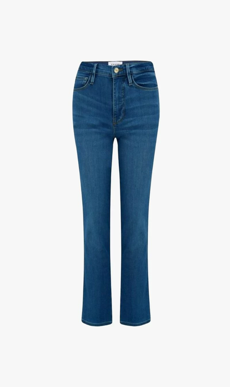 The Le Sylvie jean by Frame Denim is a classic high-rise, straight-leg jean and is crafted from Frame’s signature denim in a blue hue.