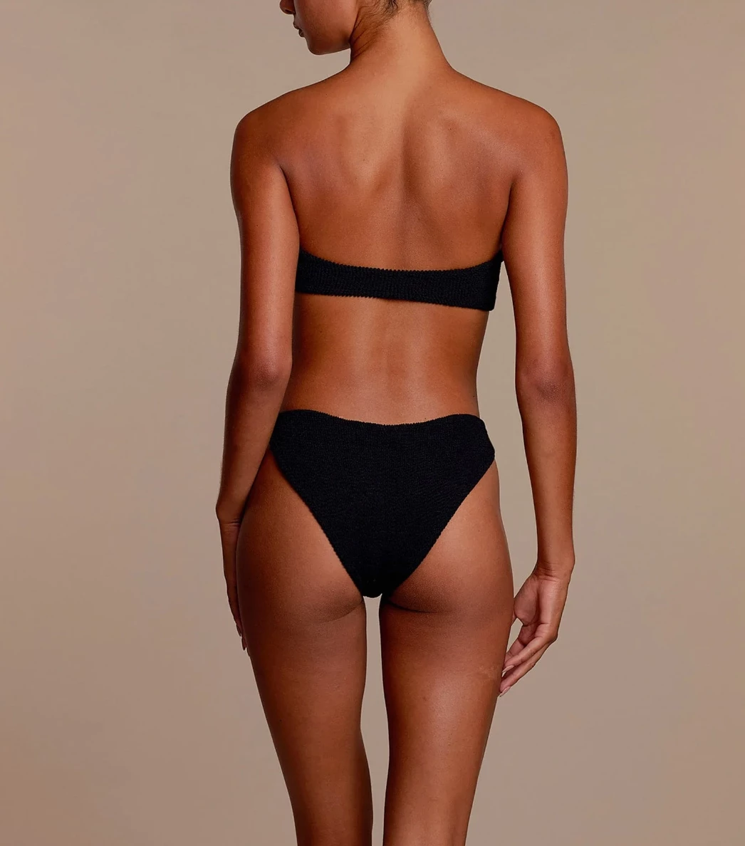 Bandeaus aren’t just for small busts – the Jean Bikini Hunza G has the coverage you need without compromising on strap-free style. Crafted from the famed crinkle cut fabrication, this one size fits all bikini is a classic with a subtle knot at the front and loads of summer style.Â