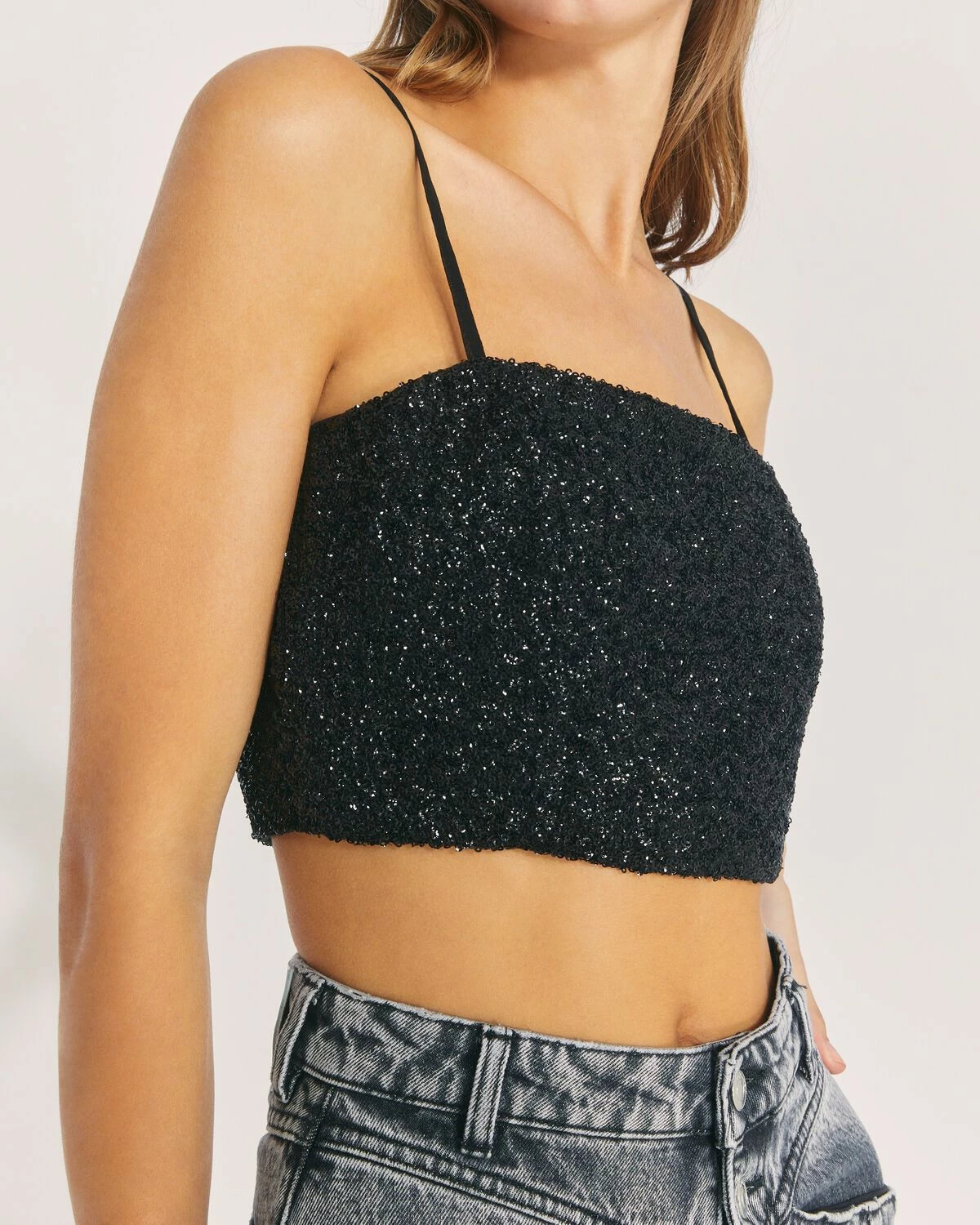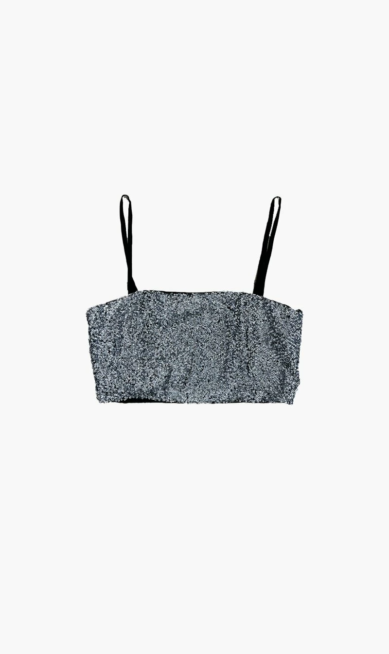 This fabulous IRO cami-style Lasting croptop features sequin embellishment and spaghetti straps. Offset this delicate piece with highwaisted trousers on your next girls night out.