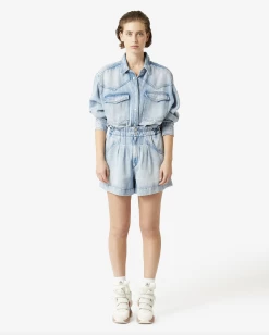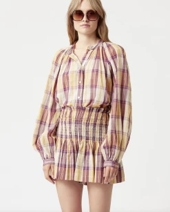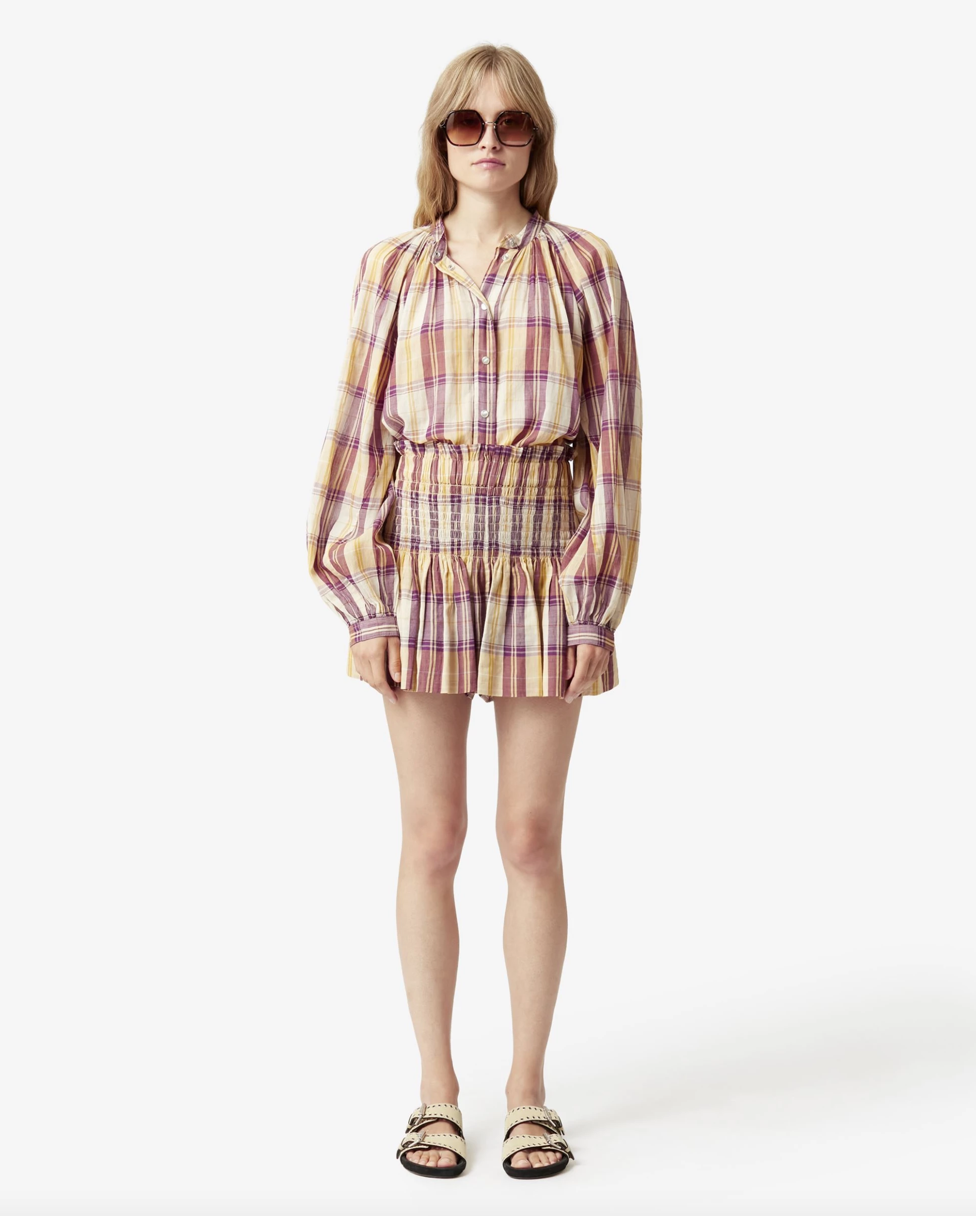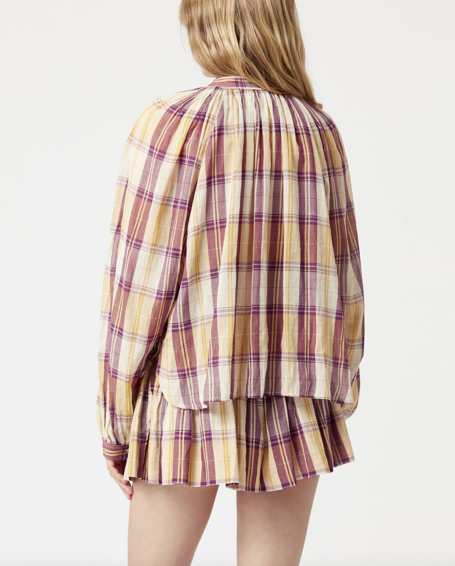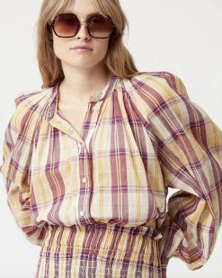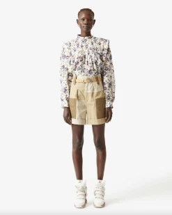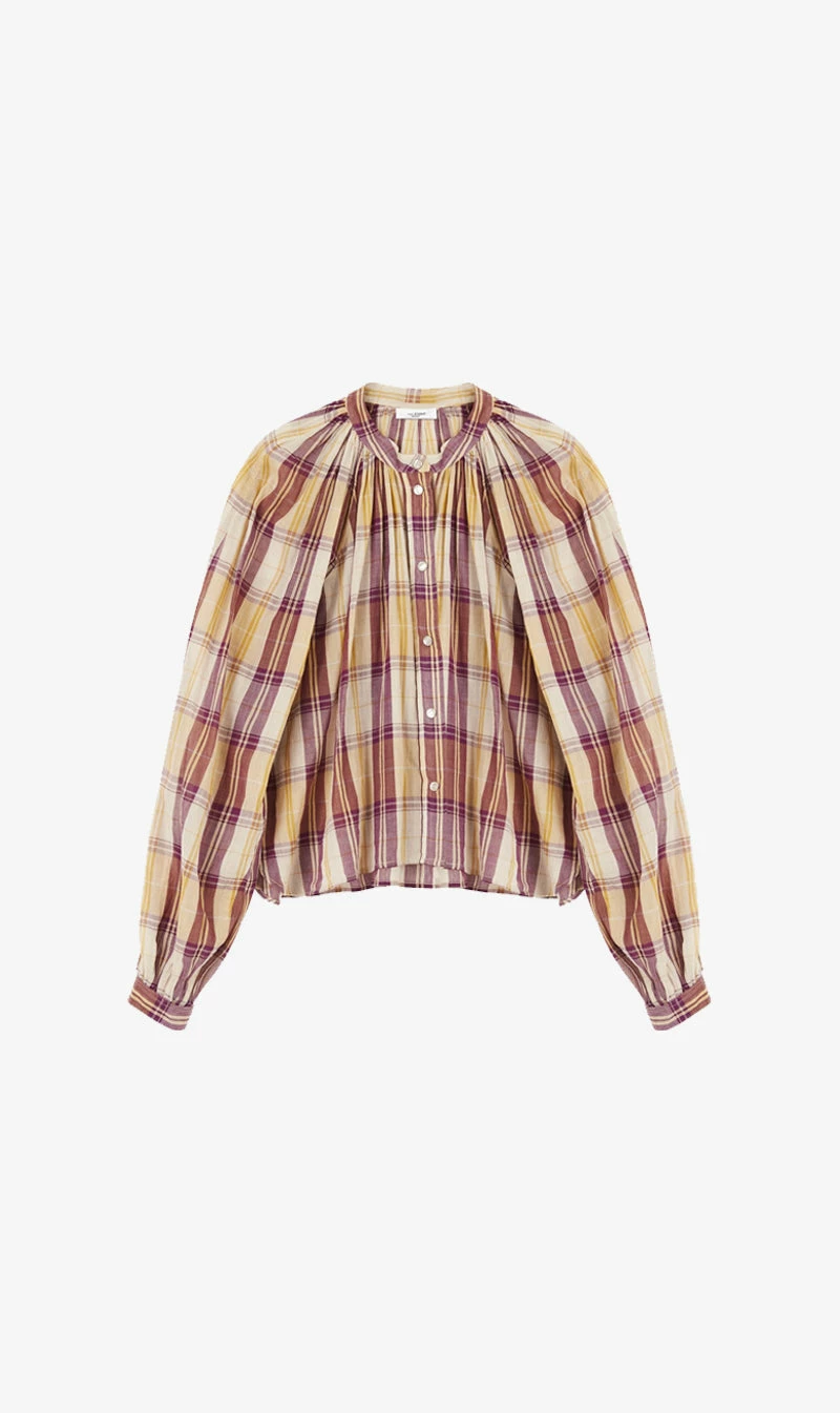 The Isabel Marant Blandine Shirt in Honey. A Cotton shirt with long sleeves featuring a front button closure.