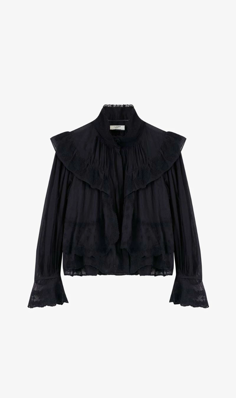 The Isabel Marant Lelmon Blouse in cotton and lace with short sleeves