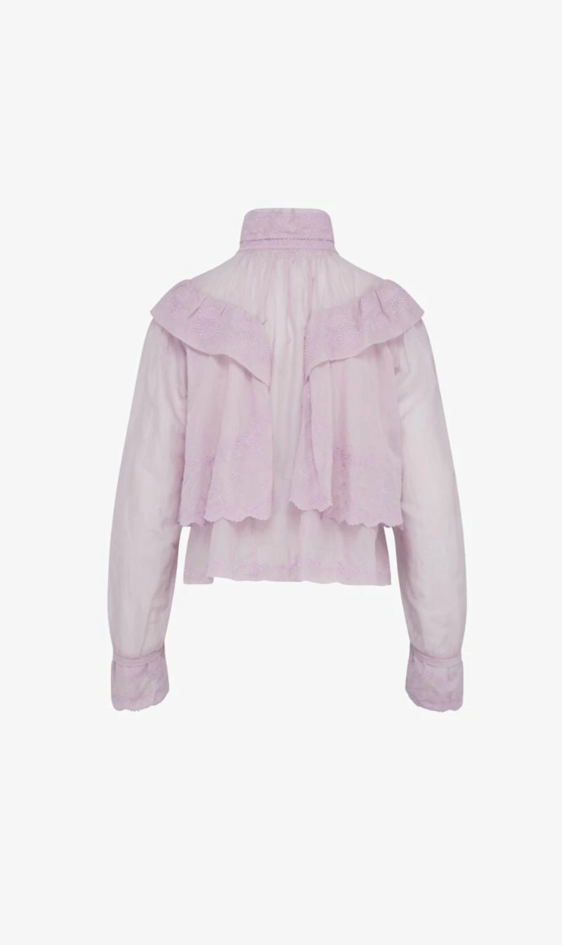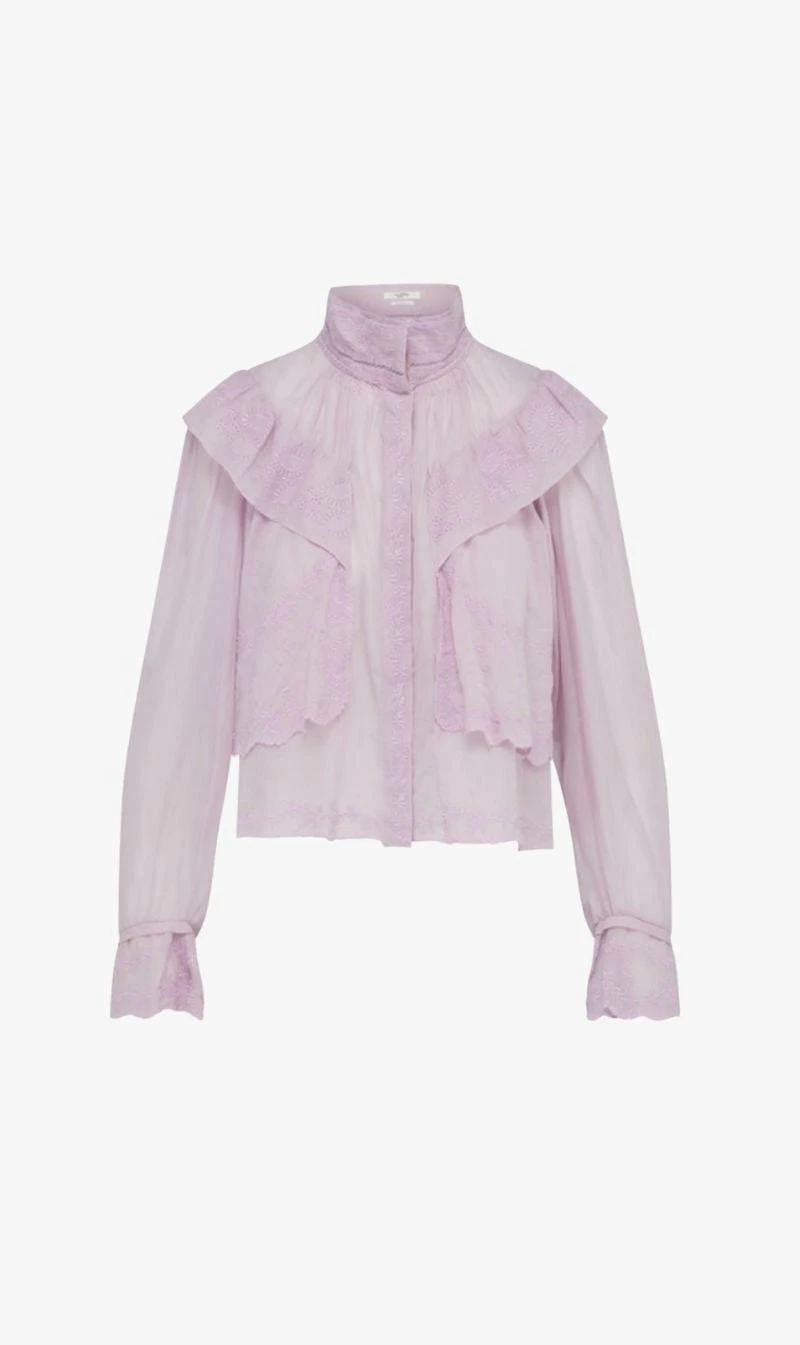 The Isabel Marant Lelmon Blouse beautiful pale lilac. Crafted in cotton and lace with short sleeves.