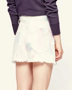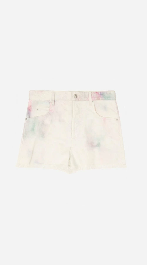 The Isabel Marant Lesiabb Shorts in Celadon are the ultimate Tie-dye denim shorts featuring a button and zipper closure. Pair with a classic white tee or oversized sweater for an off-duty look.