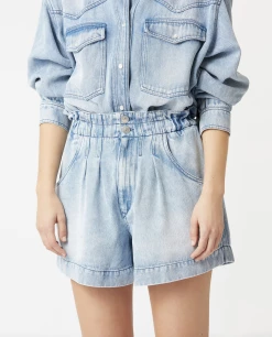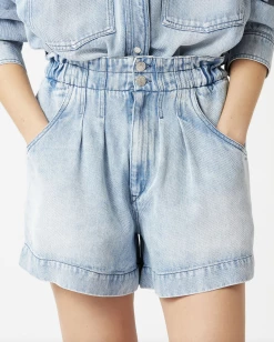 The Isabel Marant Teresa Shorts in Light Blue. A highwaisted short featuring button and zip closure.