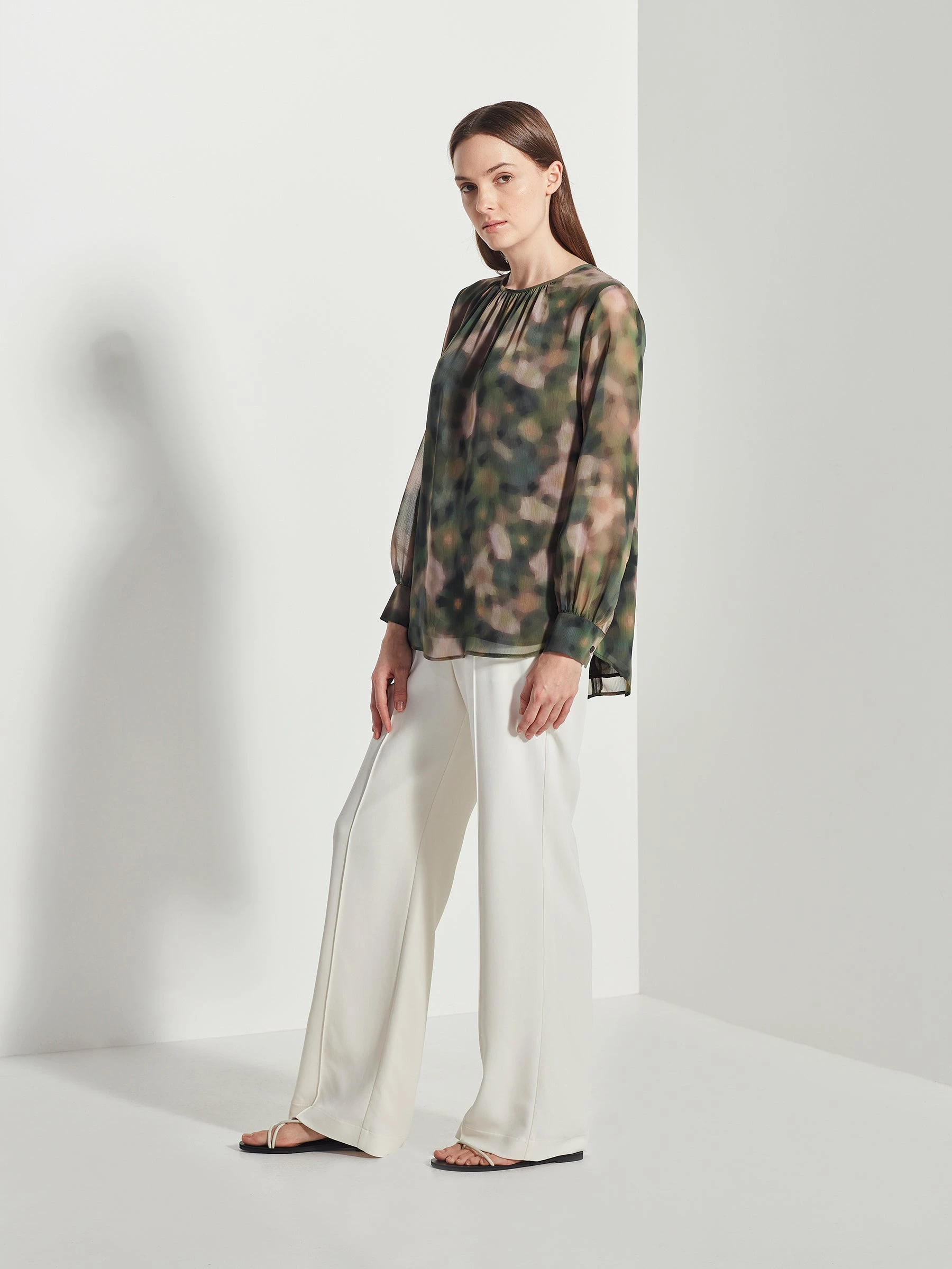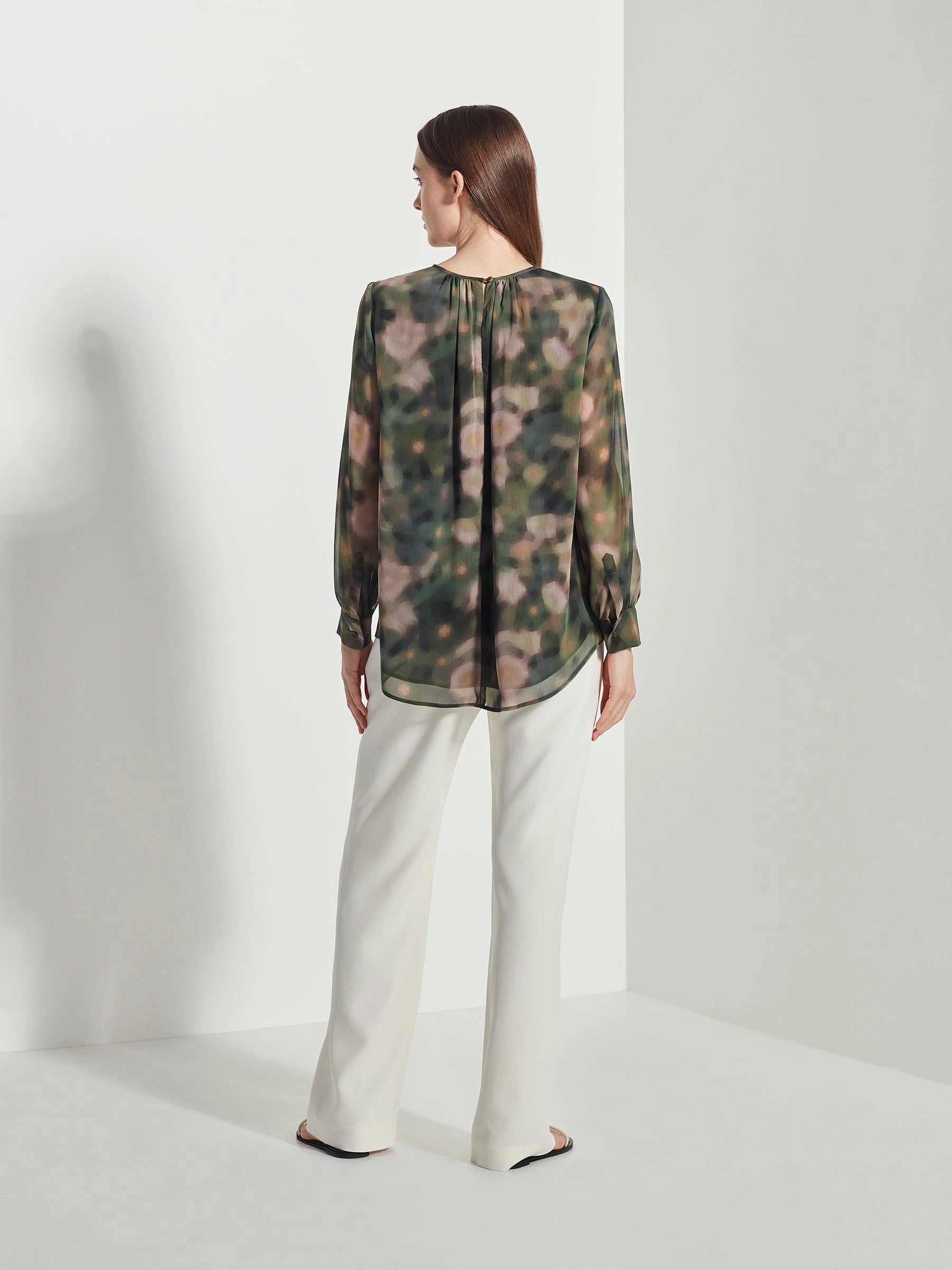 The Juliette Hogan Ara Blouse in Windflower is a fun pattern inspired by abstract watercoloured florals. Designed as a long sleeve top with a modest crew neckline, it softly gathers and falls relaxed on the body.Â