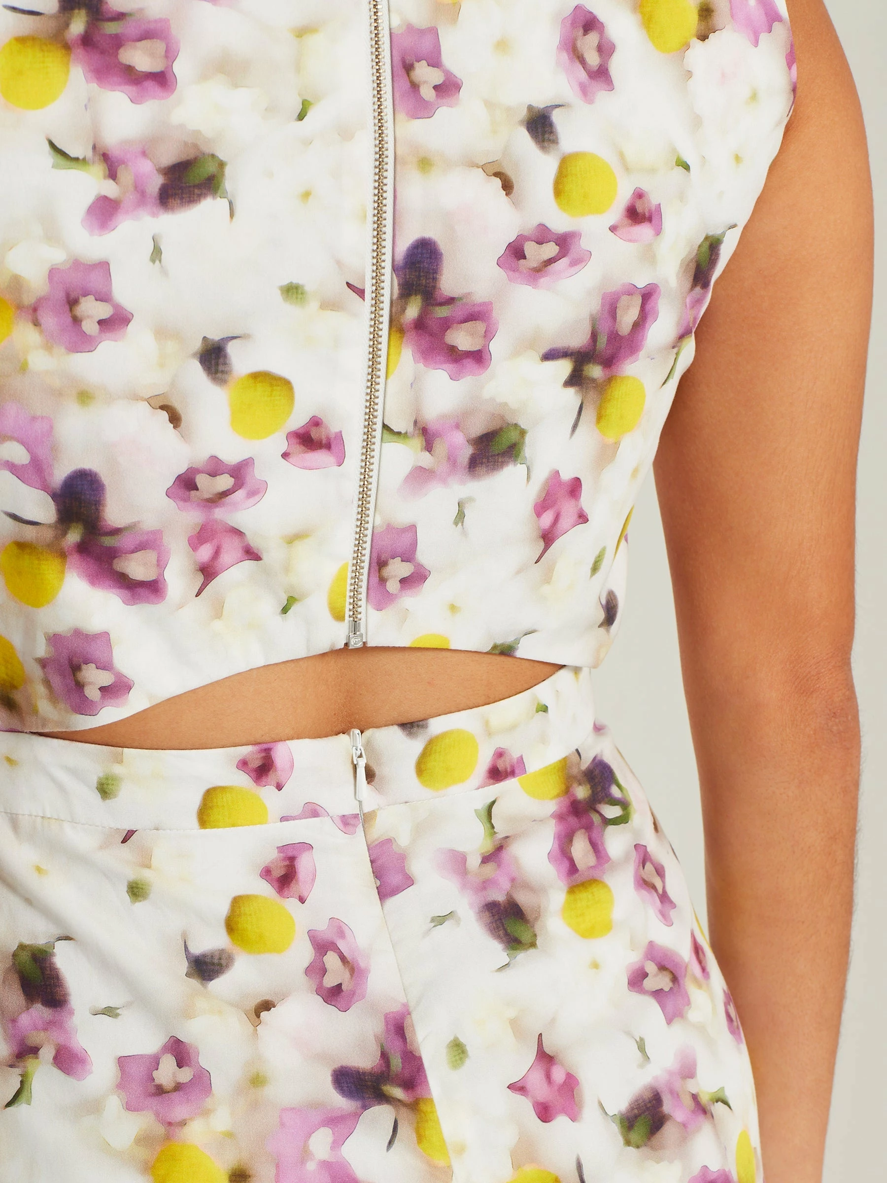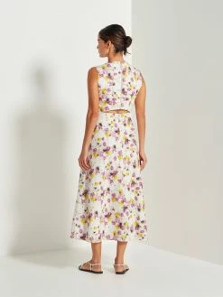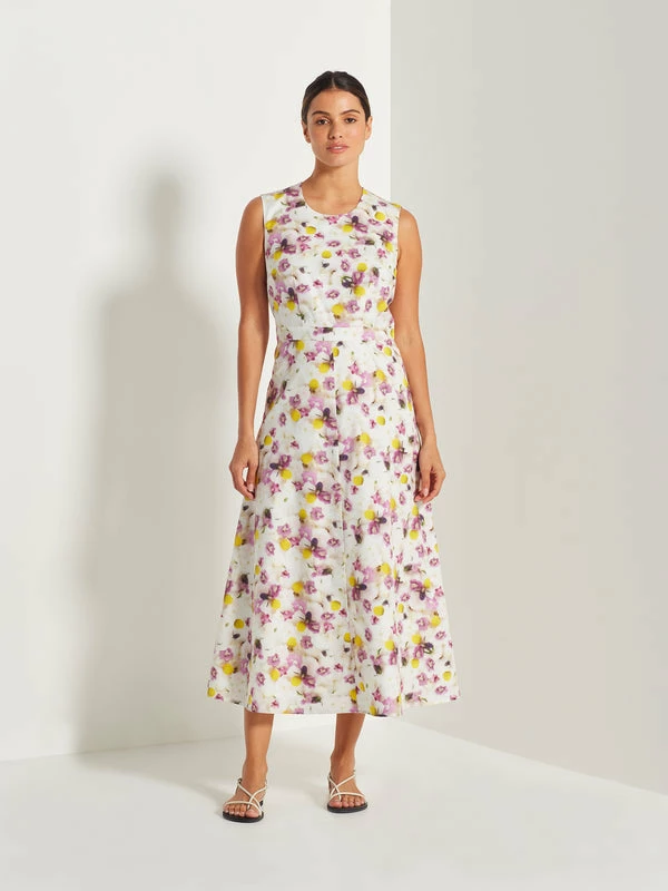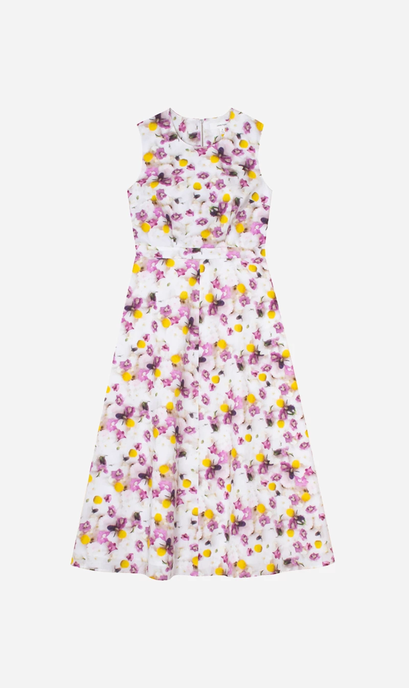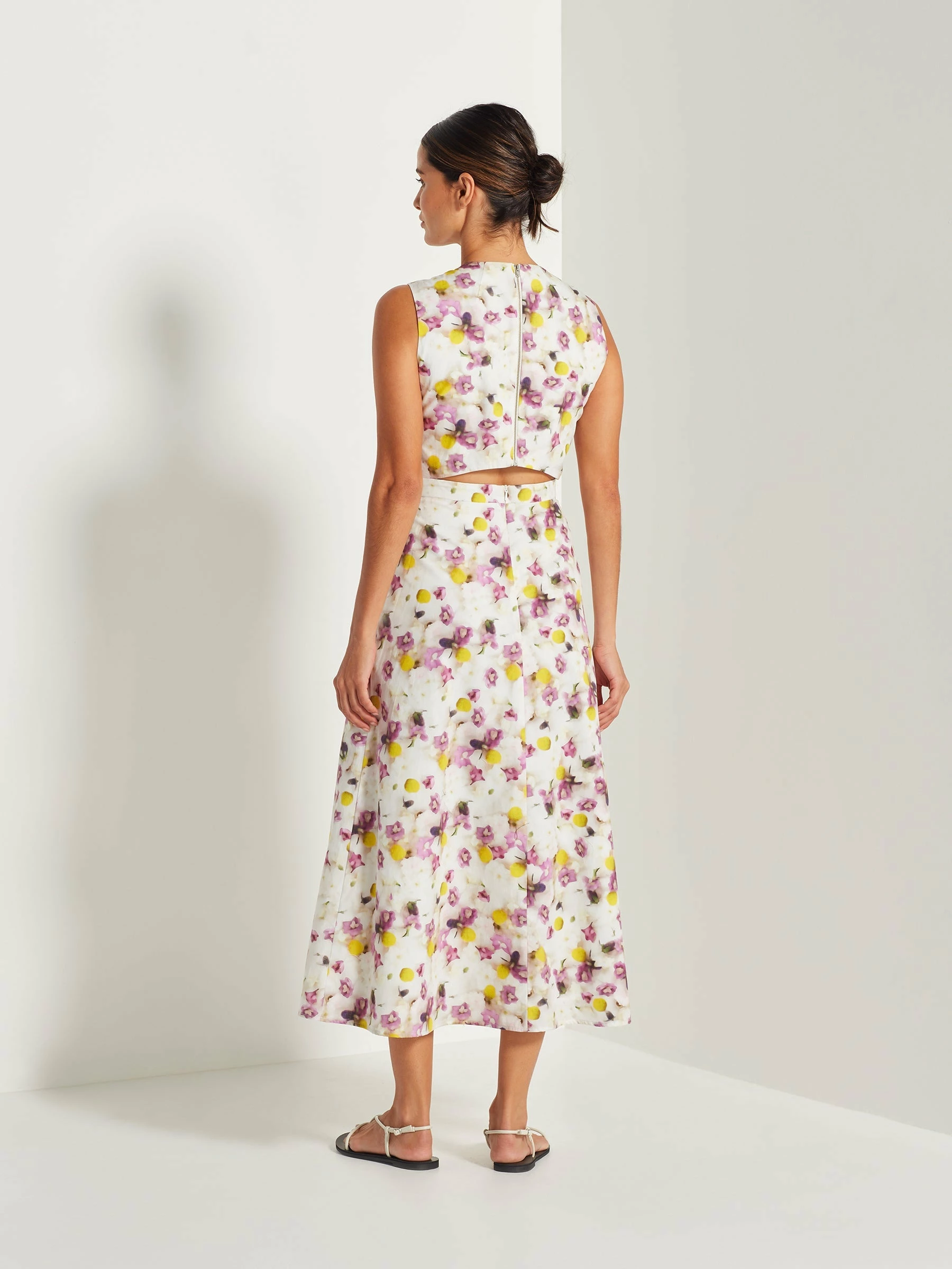 The Flossie Dress by Juliette Hogan is a mid length, semi structured tank bodice style featuring a statement back cut out and zip. In beautifully soft 100% Cotton and fresh Limoncello, print let this dress take you from day to night with ease. Pair with a simple slide, or elevate with a strappy heel.