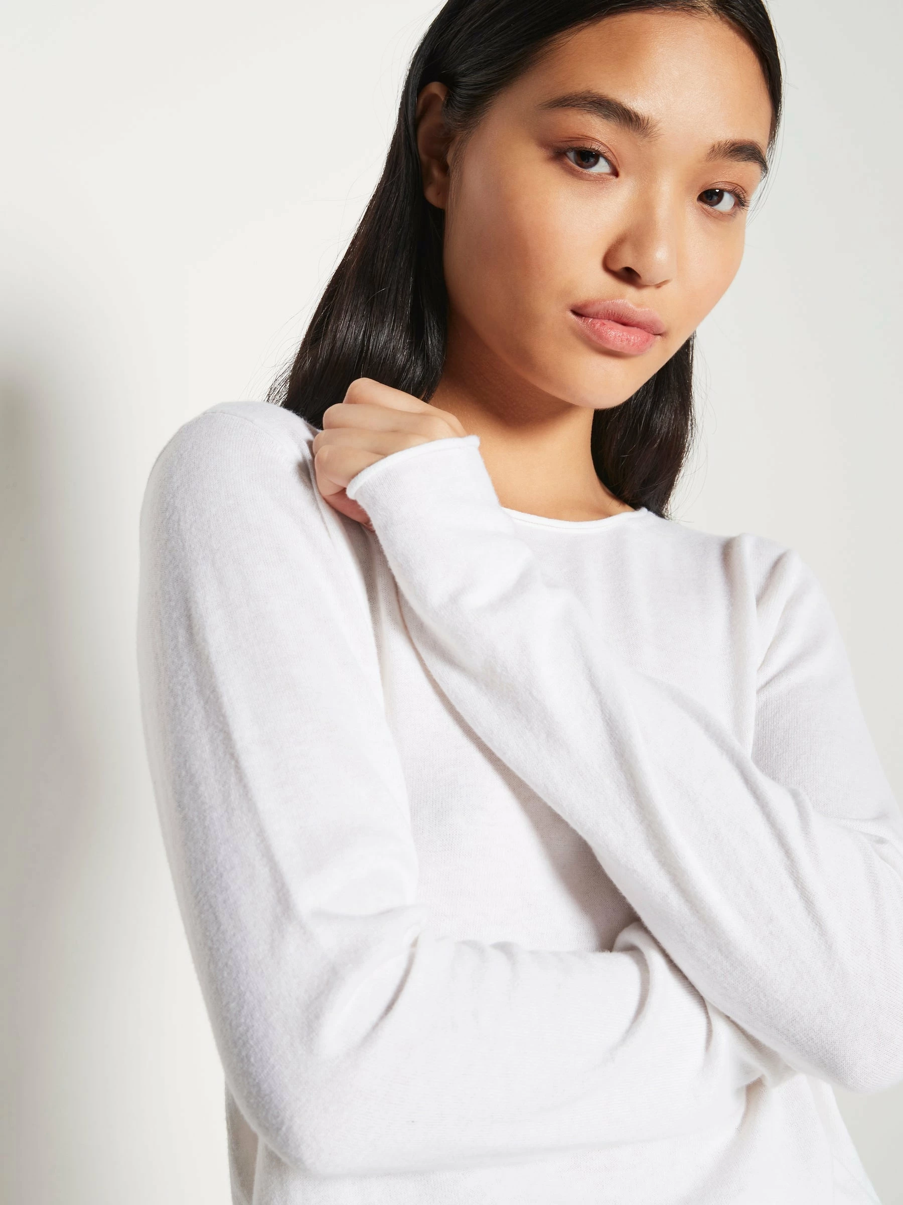 The Crew L/S T from JHL by Juliette Hogan with a relaxed fit and generous long sleeve is beautifully crafted in a lightweight fine gauge knit. Bringing together the strength, stability and easy-care properties of cotton with the soft and unique handle of sustainable and traceable cashmere, this is a simple yet essential piece here to take the noise out of getting dressed.