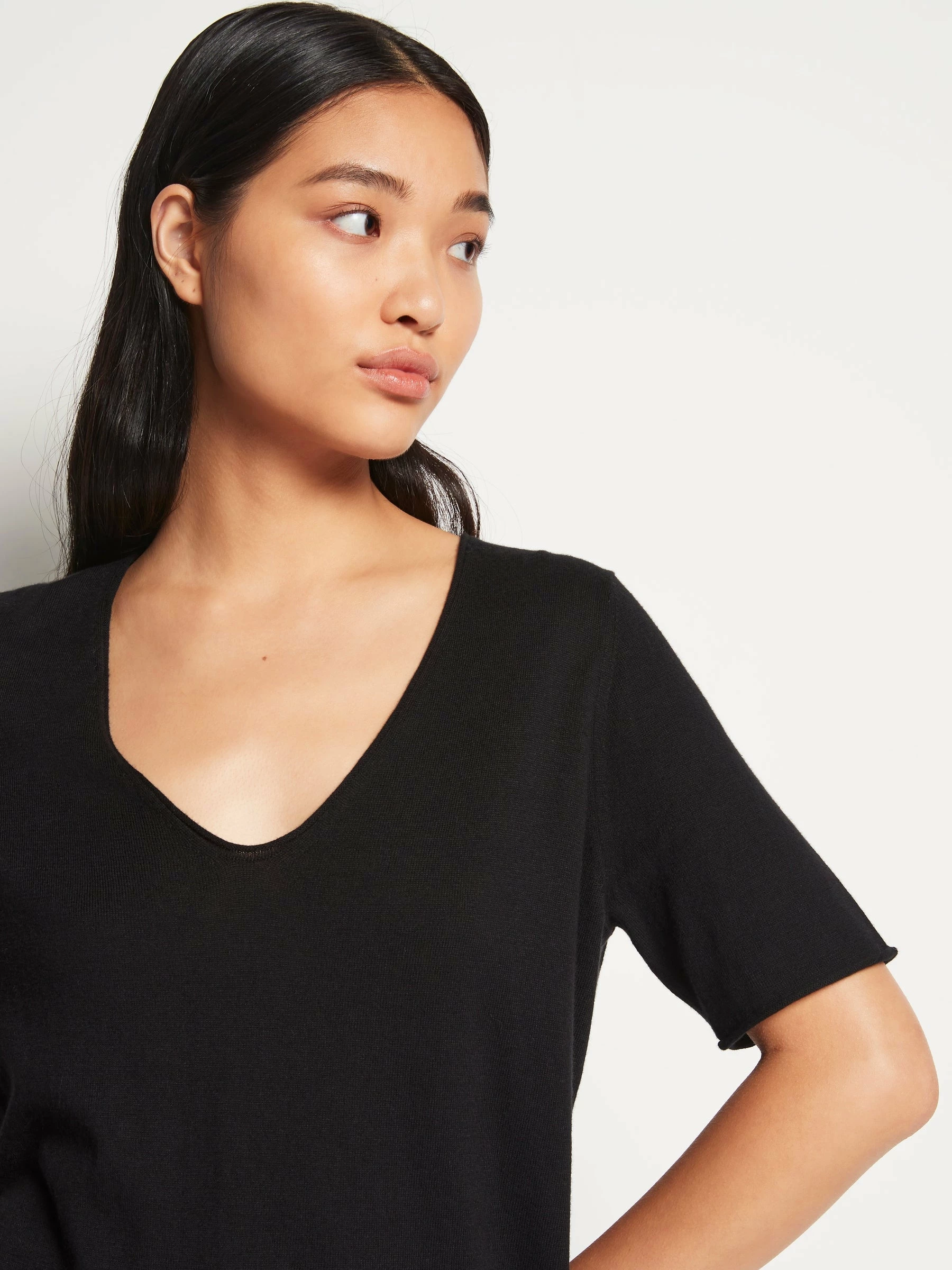- Refined rolled crew neck and hem