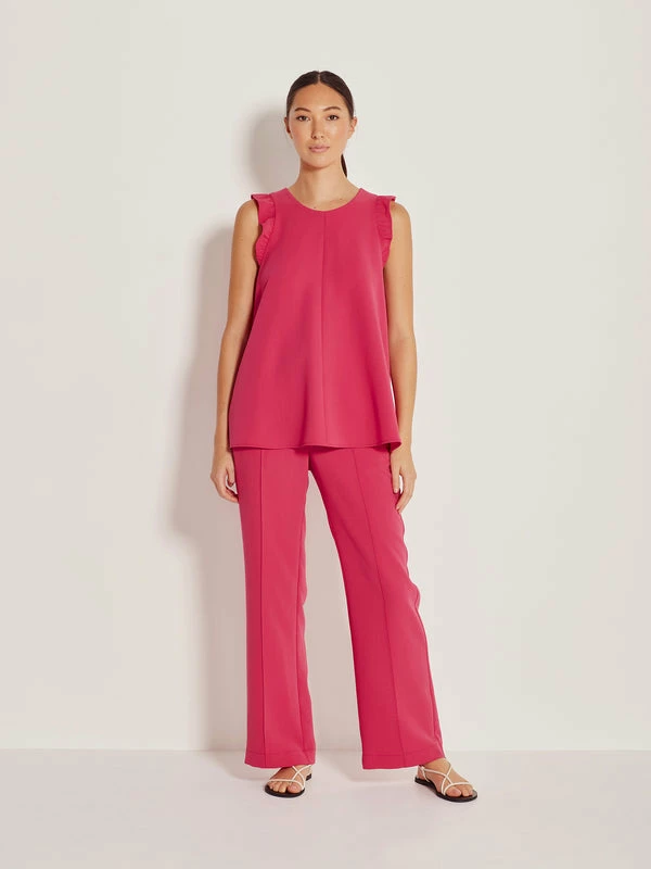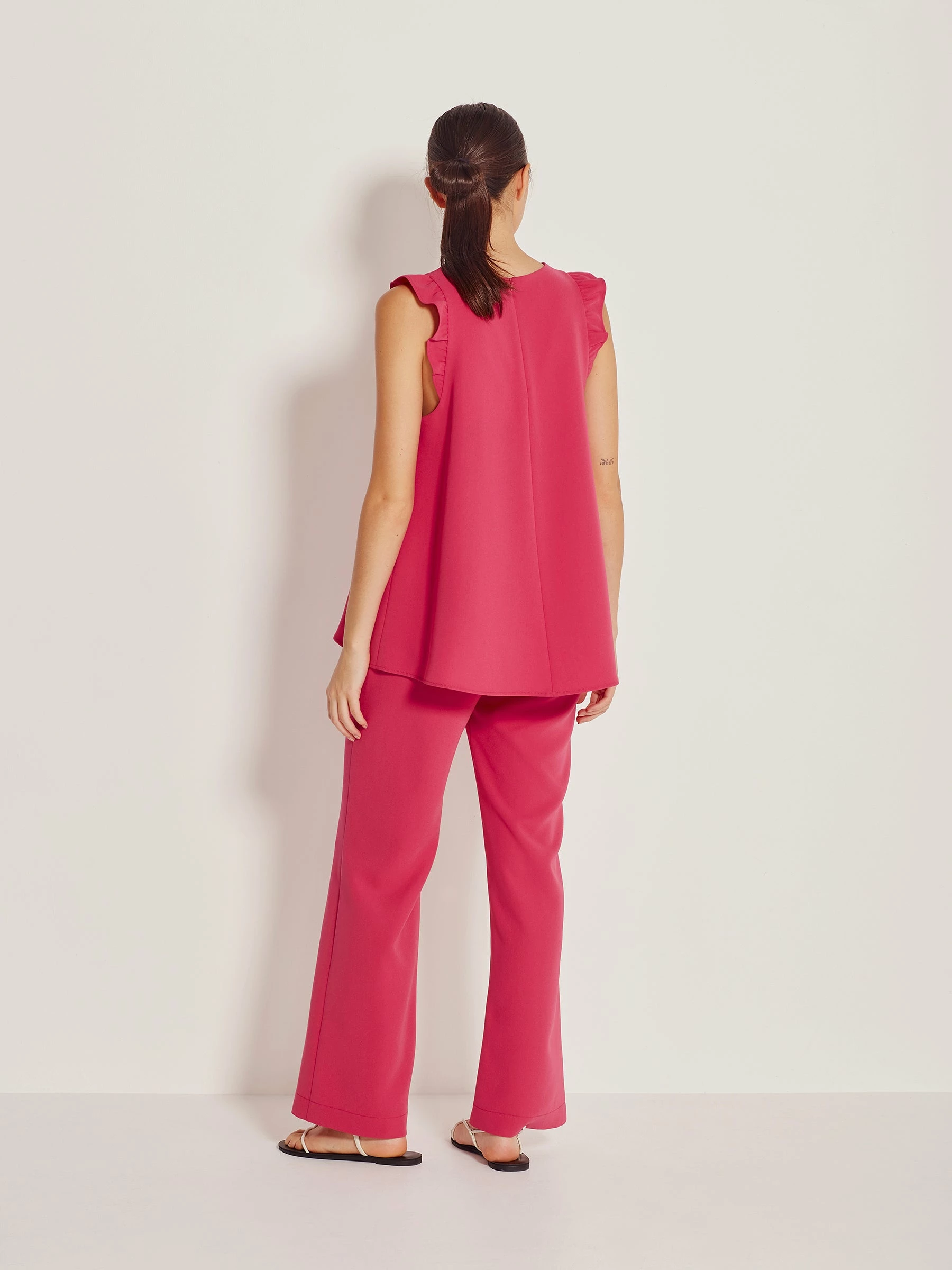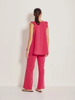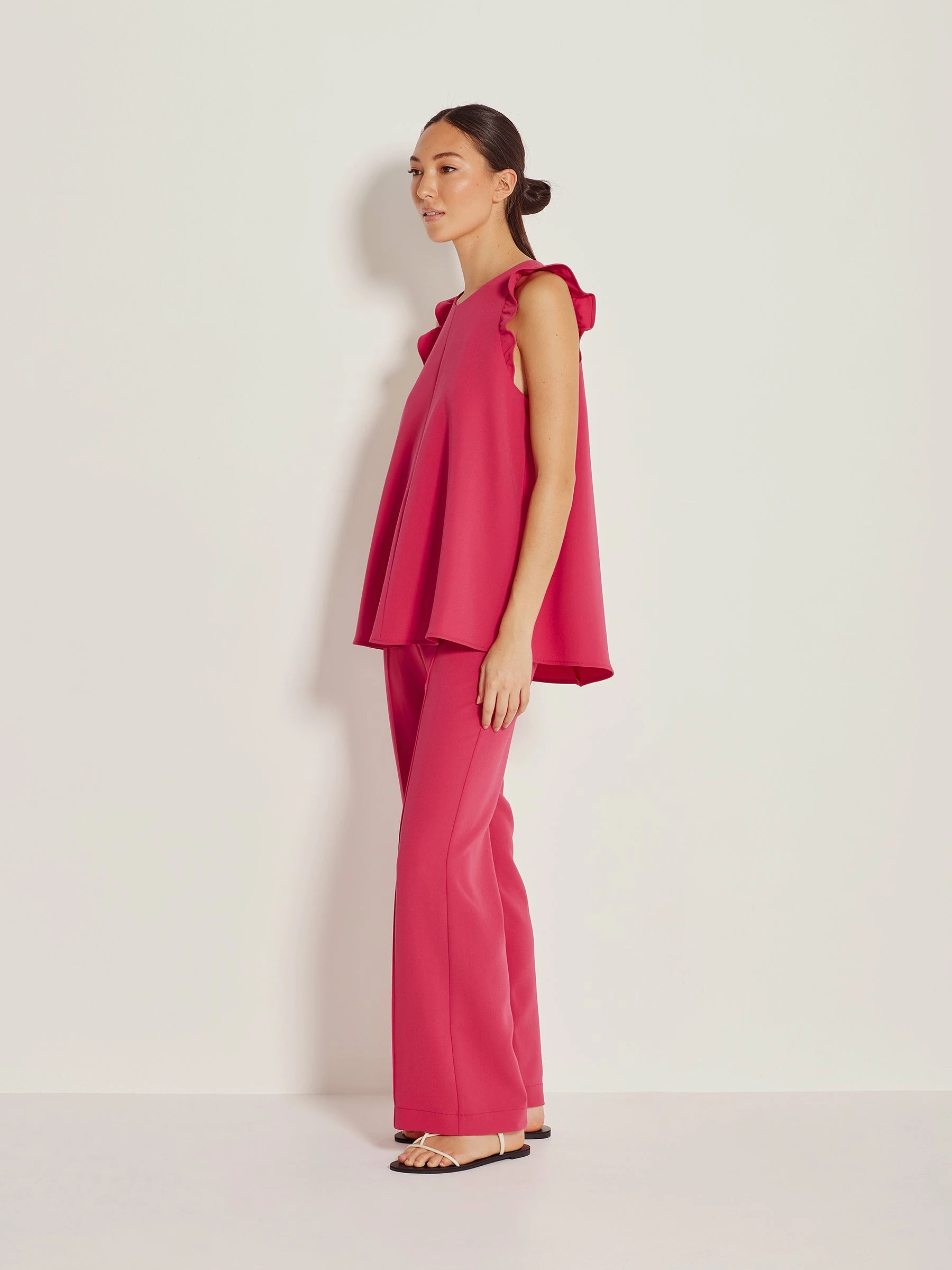 The Truffle Top from Juliette Hogan is a sleeveless style blouse with simple shoulder detailing. The striking colour and structured silhoutte can take you from work to evening.