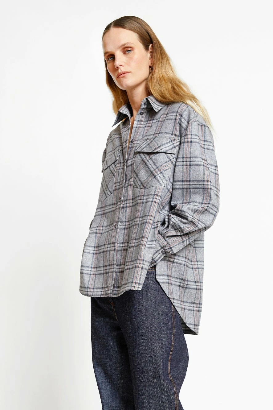 The Karen Walker Classic Shirt is exactly what the name says, a wardrobe essential that exudes true timeless style. Crafted in a comfortable flannelette, this shirt has a straight fit that features a sharp collar, a classic buttoned front and a curved hem with subtle side seam splits that stay true to its simplicity. Flap patch pockets sit on the chest and the long relaxed sleeves are neatly cuffed, both adding a utilitarian touch that delivers an effortlessly cool off-duty look.