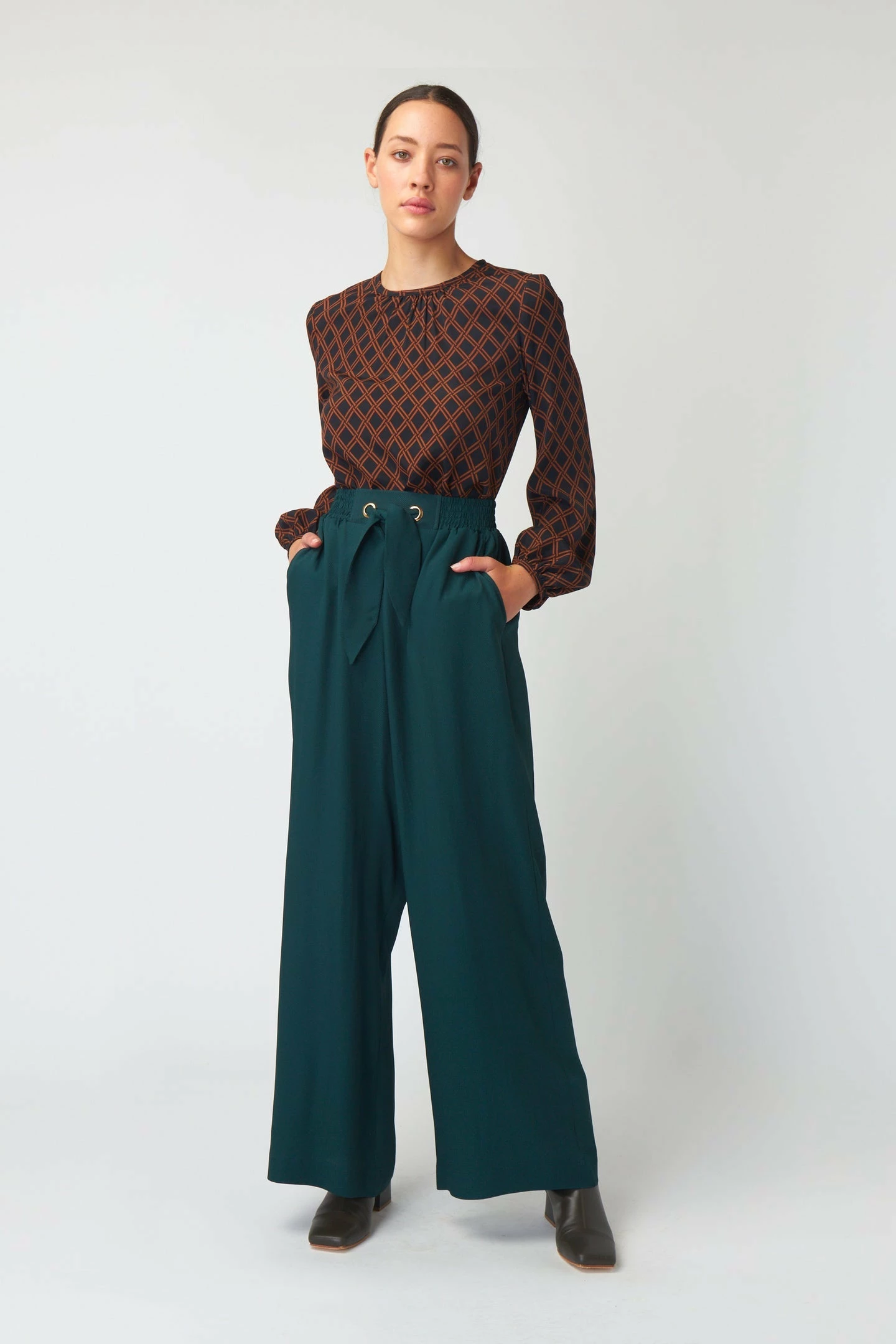 The Kate Sylvester Lia Top in Black. A beautiful workwear separate, the silk-viscose Lia top by Kate Sylvester is made in New Zealand and features gather detail at the neckline and cuffs. A long-sleeved style, it’s a relaxed fit through the body and is perfect styled back with our Faye trouser or suiting separates.Â