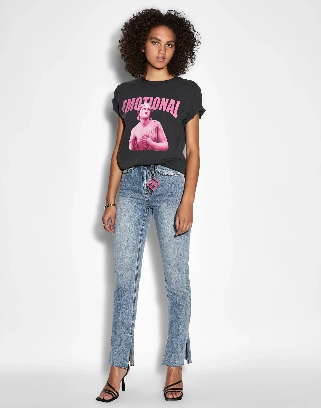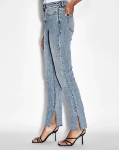 The Melrose Haven Splits from Ksubi is a high-rise, slim cigarette fit pant detailed with hem side seam splits and Ksubi branding. Made from premium European rigid denim in washed mid-blue indigo colourway with subtle contrast wear, this pant is a full-length style with classic five-pocket detailing and a raw-cut hem.