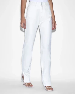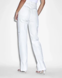 The Ksubi Melrose Jean in Blanc is made from a premium rigid denim featured in a white colourway. This style is a slim cigarette fit, high rise waist and features Ksubi branding, classic five pocket detailing and full length with side seam hem split.