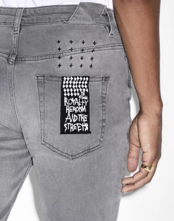 The Chitch Prodigy in Denim from Ksubi is a mid-rise, slim-fit denim jeans in a smokey grey wash constructed from 99% cotton and 1% elastane, European comfort stretch denim. The Chitch Prodigy jean features the signature 4×4 embroidery on the back, Ksubi branding, and a removable back pocket tag.