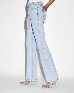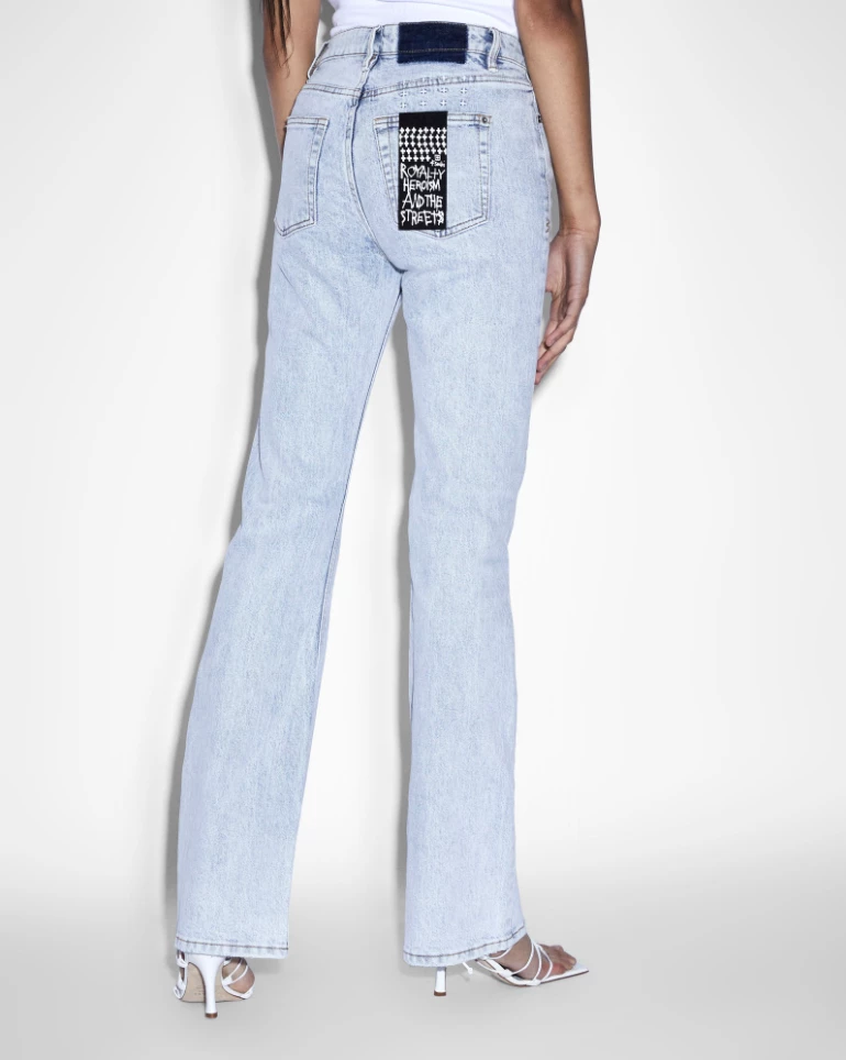 The Ksubi Soho Muse in Denim is a bootcut leg with a high waisted fit and features Ksubi t-box print, classic five pocket detailing and back cross embroidery. This style is made from a premium comfort stretch denim in a heavy stonewashed blue.