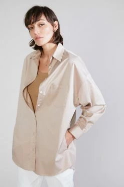 Cut for a relaxed fit from beautifully polished cotton poplin, the fabulous Oversized Cotton Shirt from Laing is both timeless and versatile. Purposely oversized, this piece if perfect worn open over a tank, t-shirt or dress like a soft jacket. The dropped shoulders and a curved, split hem make it for the perfect partial tuck too.