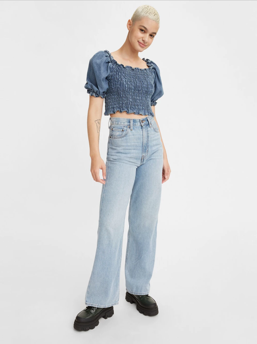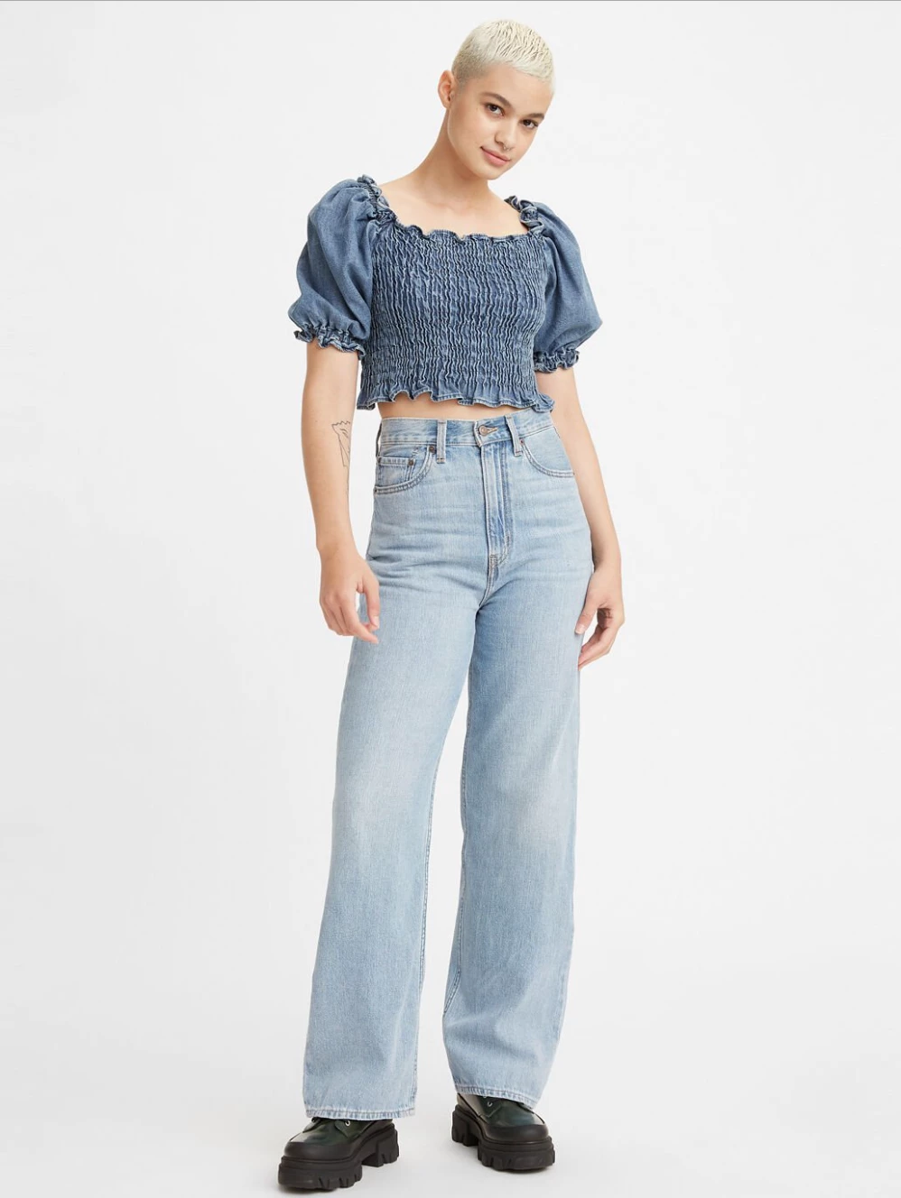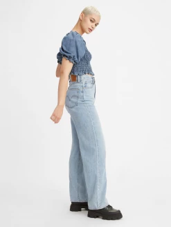 The Levis High Loose Jean in Lets Stay In. Let loose with this modern interpretation of a classic ’90s style. These jeans features a wide leg and flattering high rise. What does that mean for you? A cool, vintage-inspired style that gives you legs for days. Crafted in 9 ounce denim.