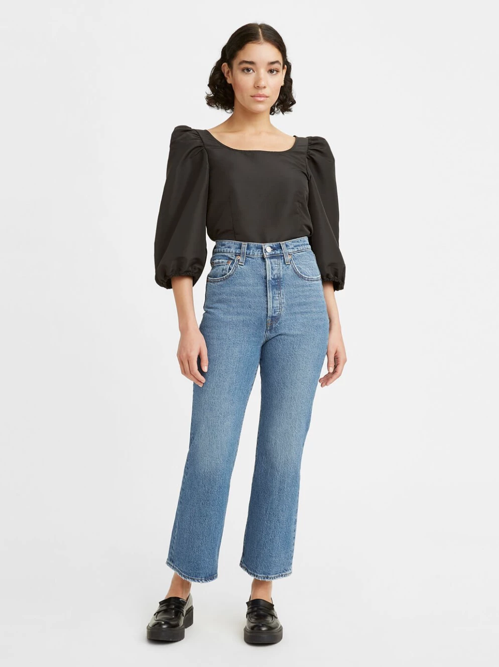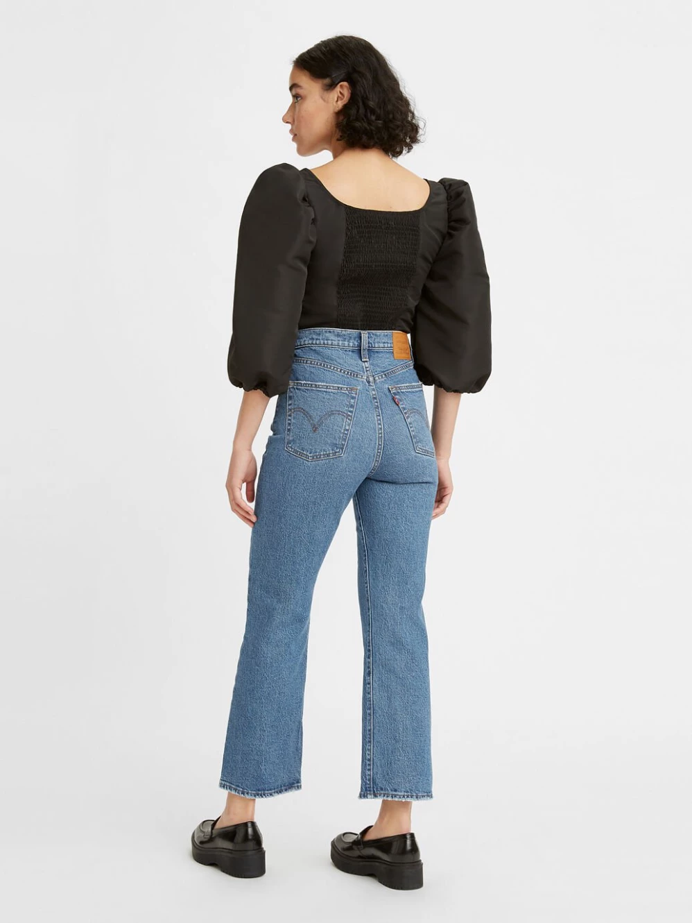 The Levis Ribcage Cropped Bootcut Jean in Jazz Icon. Levi’s® highest high rise yet. The Ribcage Jean—with its soaring 12-inch rise—has become a hip-slimming, waist-defining, leg-lengthening obsession. This fit will show off your figure and make you feel as amazing as you look. Crafted in 14.7 ounce denim.