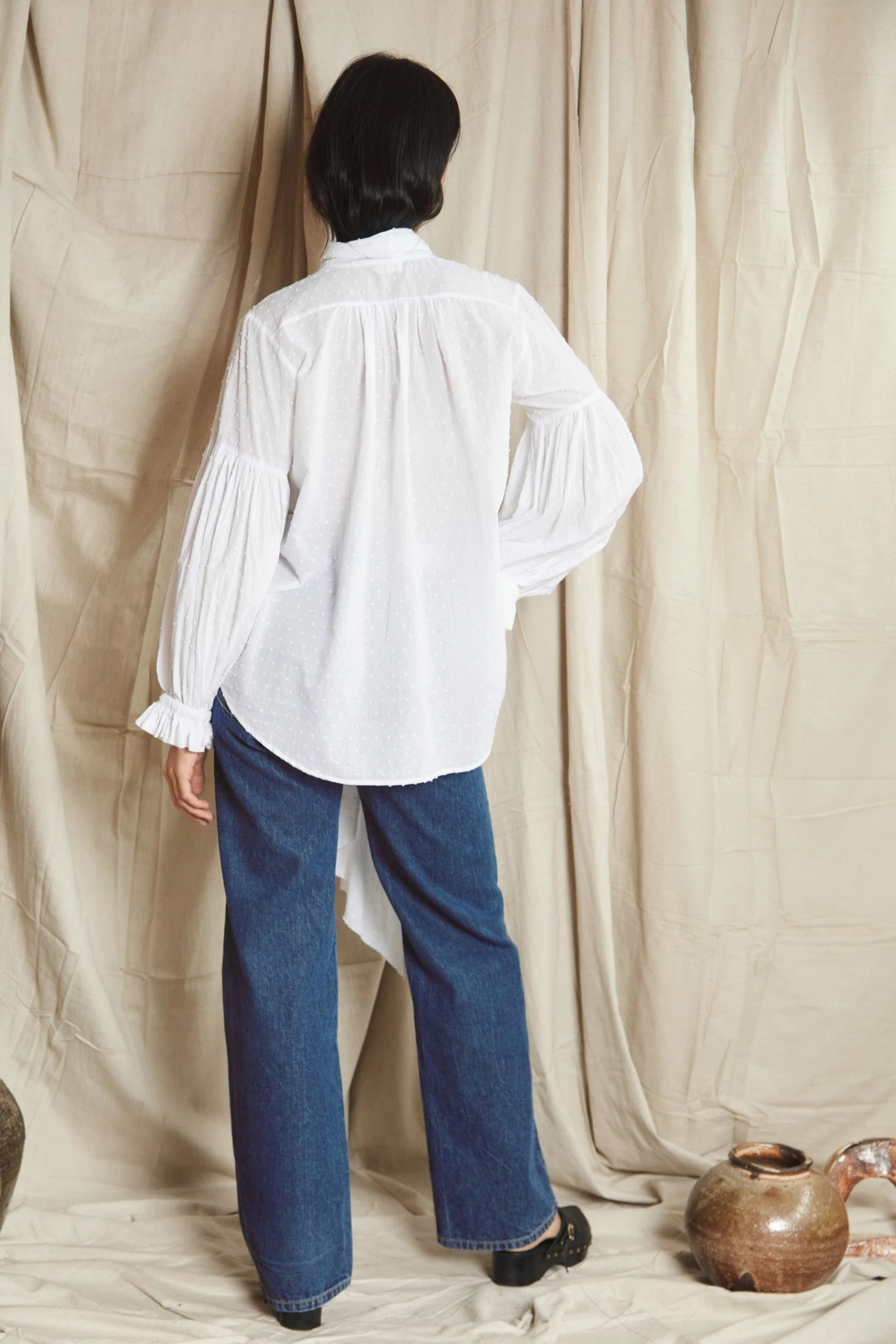 Mahsa | Bow Blouse Swiss Dot Cotton – White