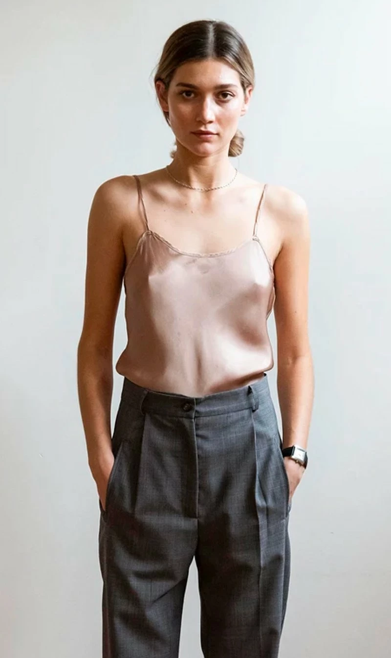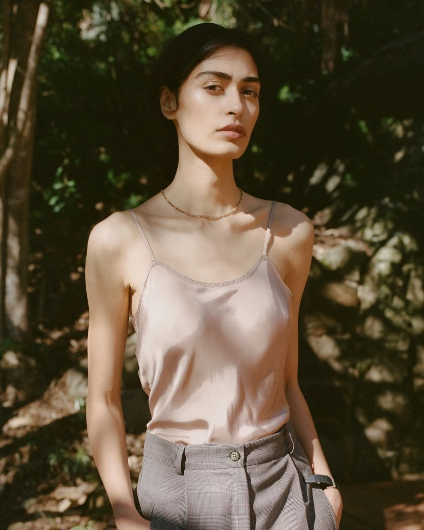 The Mahsa Camilsole is a perfect camisole to wear on its own or beneath sheer blouses for extra coverage. Slimline, with a silk-like shimmer in 100 percent washed viscose twill, it has a gently curved neckline and bias cut to contour to the body, giving it an elegantly flirtatious feel. Gold slides allow you to adjust the spaghetti straps to your ideal length.