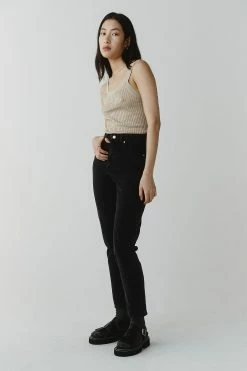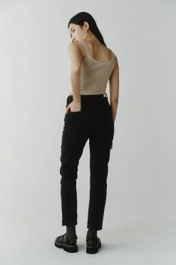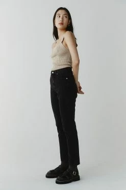 The Marle Straight Leg Jean in Black is the perfect addition to your capsule wardrobe. Straight-leg jeans with a mid-high-rise waistband. This style sits close to the waist and down through the hips, before straightening out to the ankle with a full-length straight leg. Crafted in 100% Organic Cotton, featuring a 5-pocket detail, and finished with a zip and fly closure