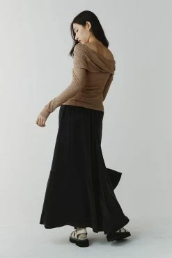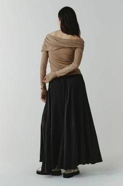 The Marle Wilma Top in Acorn is an iteration of the fan favourite Zellie Top. Featuring a slim silhouette, long sleeves and cross-over detail that wraps around the body and falls off the shoulder creating a feminine silhouette. This top is finely knitted in 100% merino.