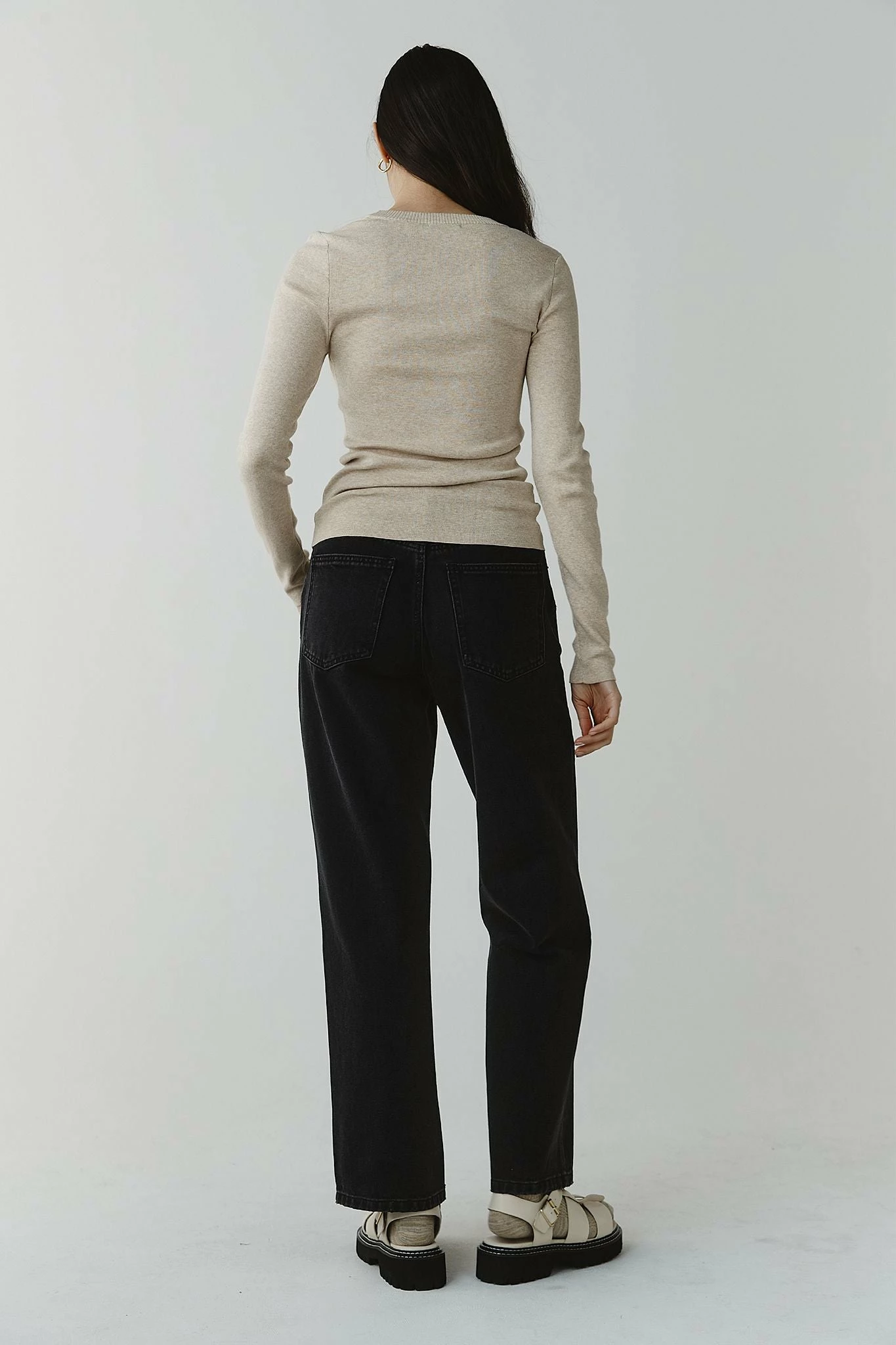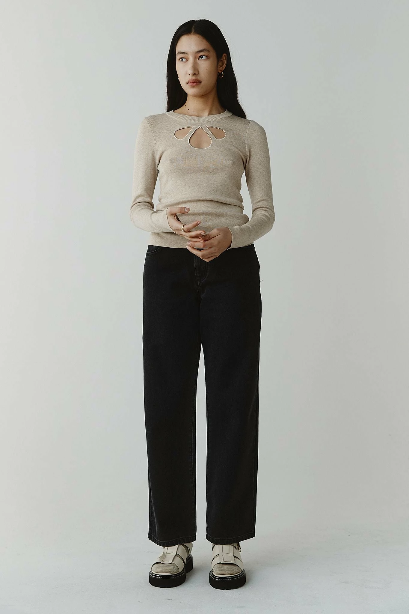The Marle Zuri Top in Oat perfectly elevates your everyday look. Finley knitted in a merino blend, it has a fitted silhouette with long sleeves and a round neckline. Featuring tear-top cut-out detailing to stand out.