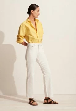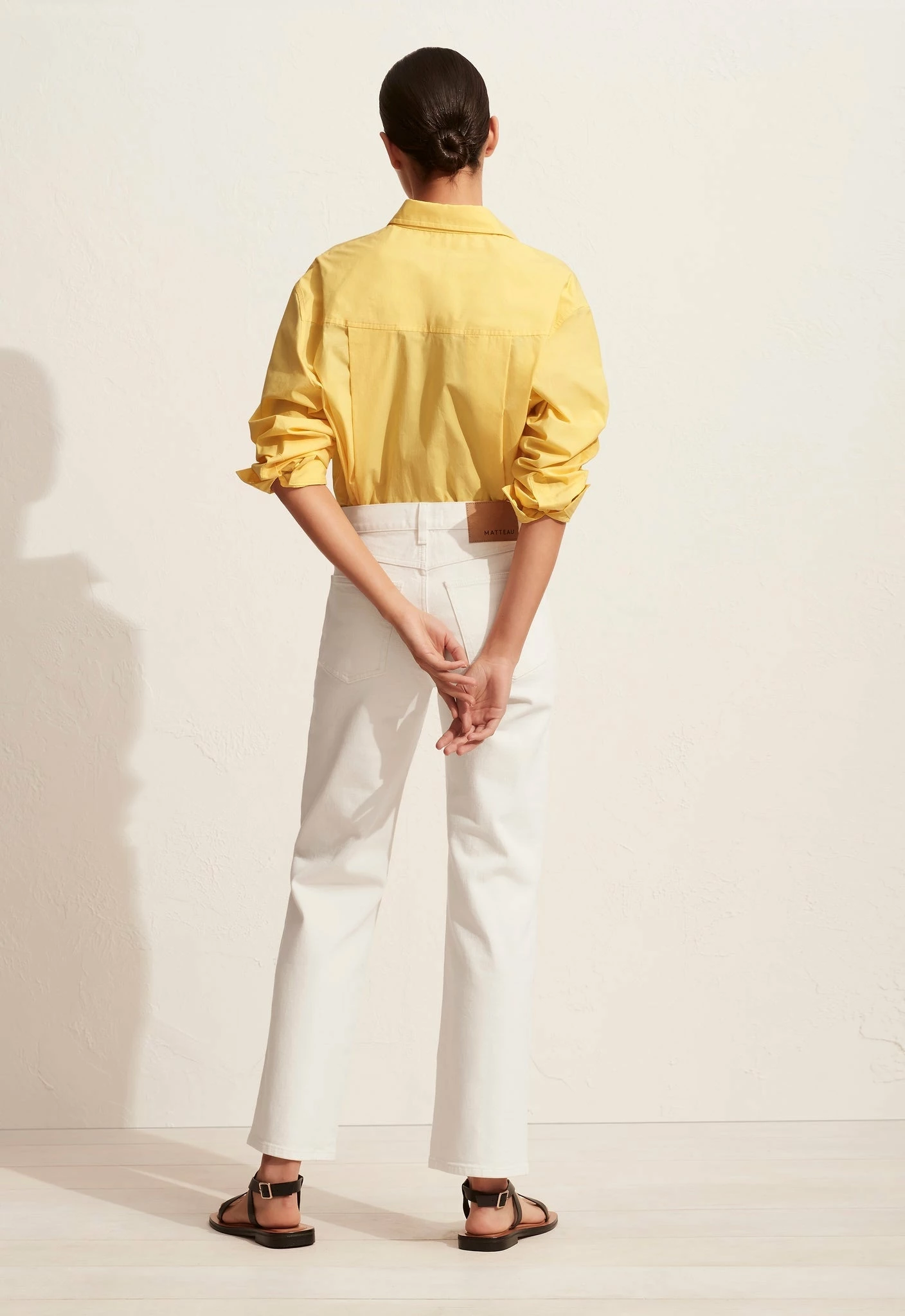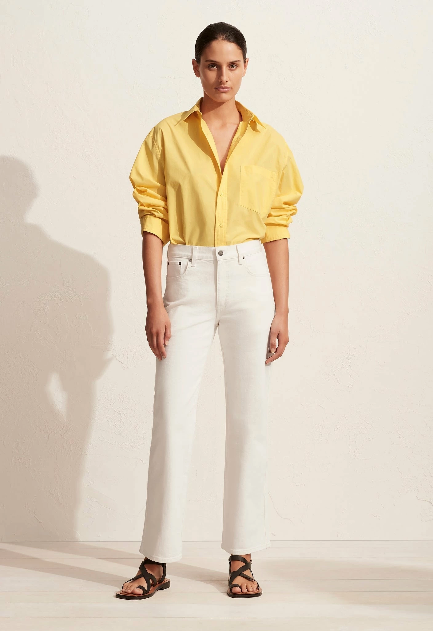 The Matteau Relaxed Shirt in Lemon. A relaxed man-style cotton shirt with single front pocket in a tumbled cotton fabrication. Relaxed fit with front and back curved hem.